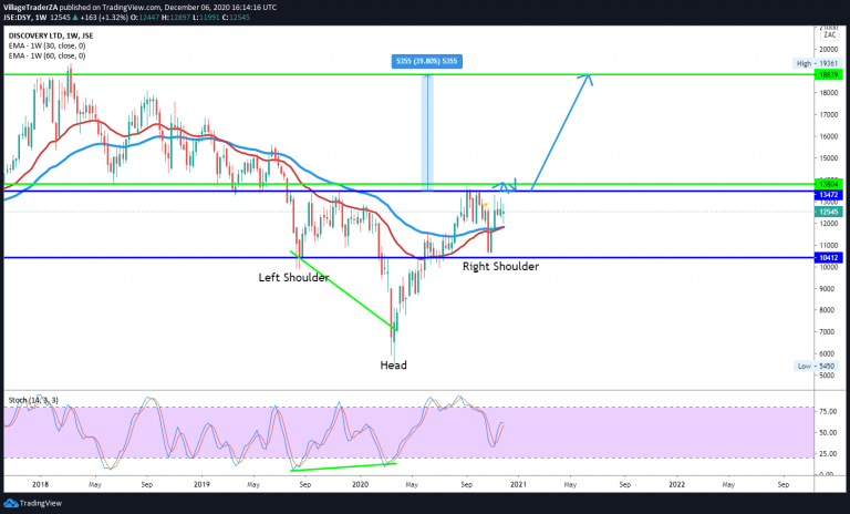 We have a nice head and shoulders pattern. Waiting for a break above the 13472c neckline. My target using the height of the distance from the head to the neckline, projected upward is 11839c. We had a bullish divergence when the left shoulder and head were formed.