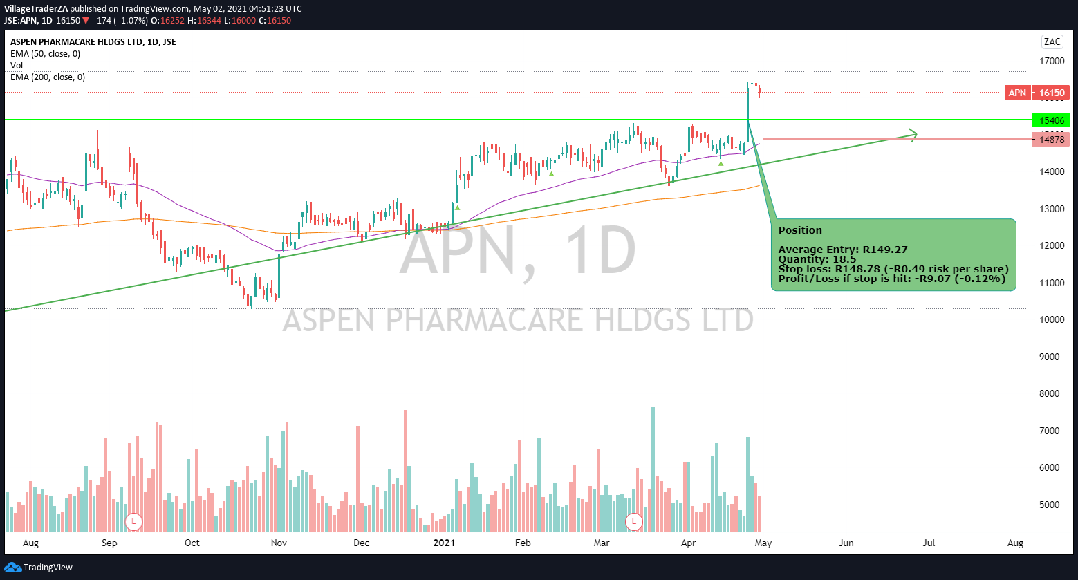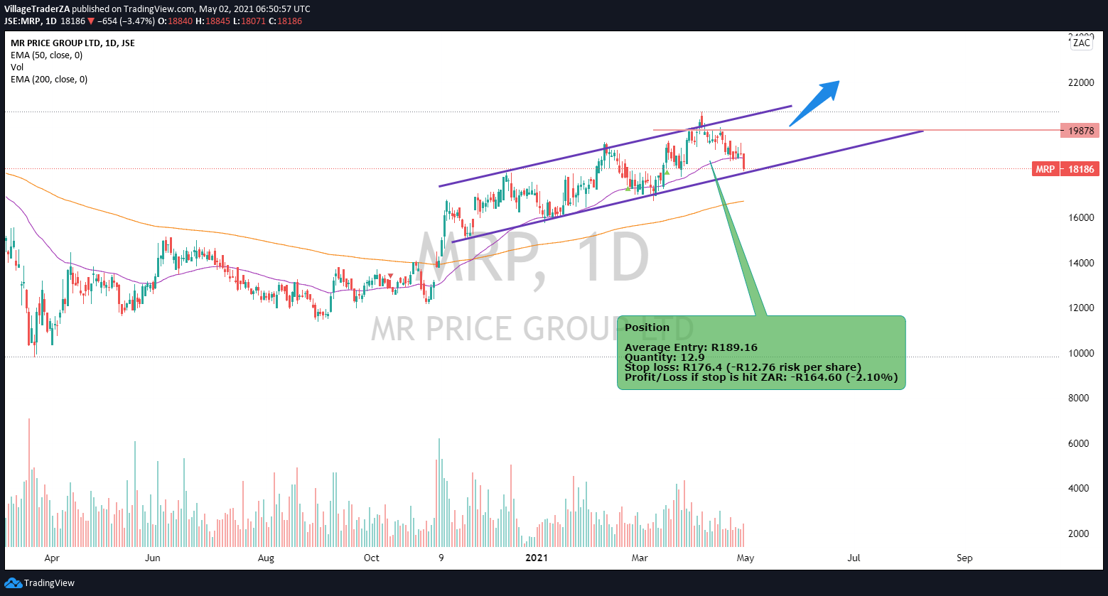 I’m now waiting for a close above R166 to readjust my stop loss.