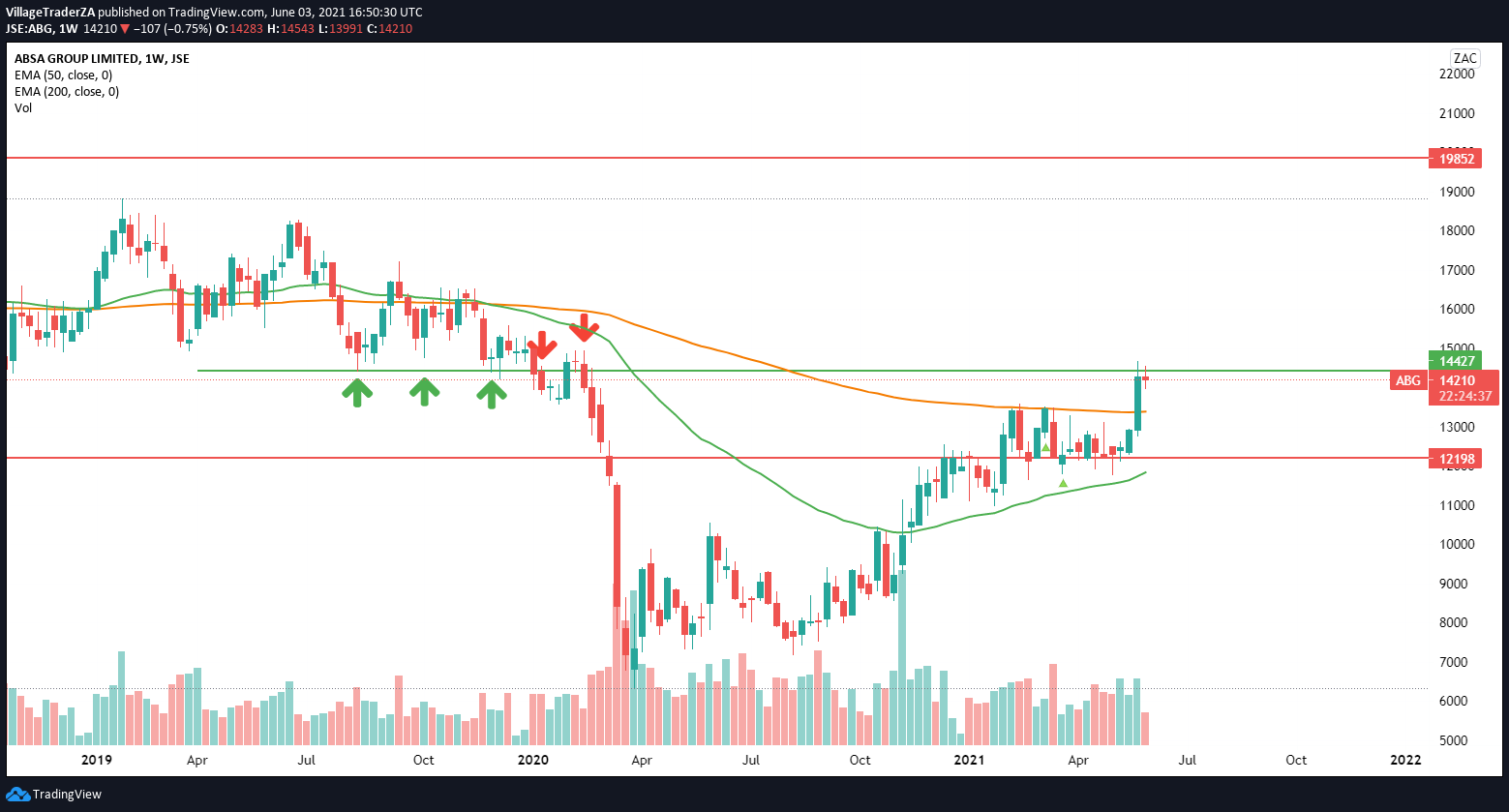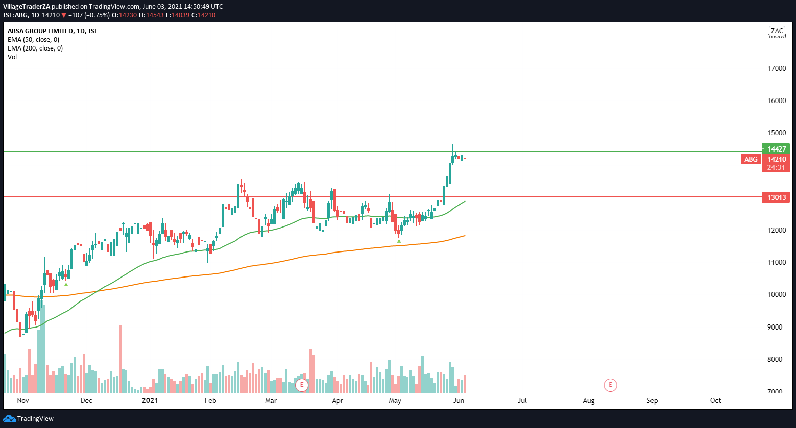 The stock is back to this level now. Finding some resistance at R144. A close above R144.30 provides a good long entry. The stock’s price action looks quite strong.