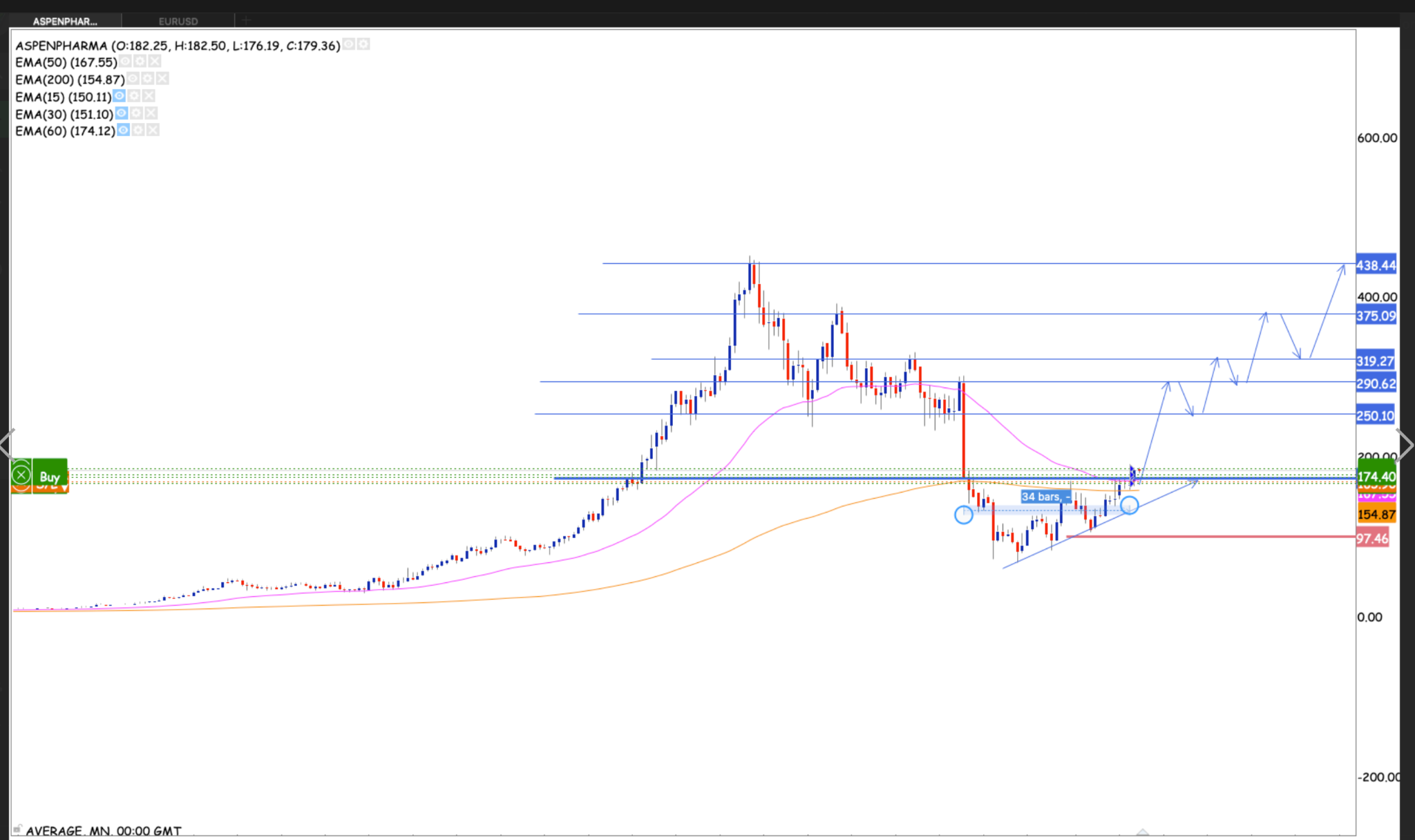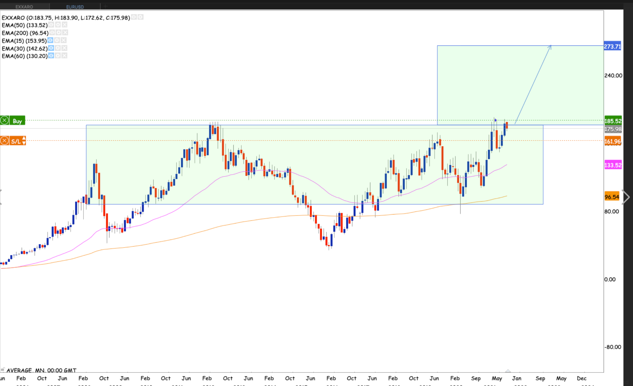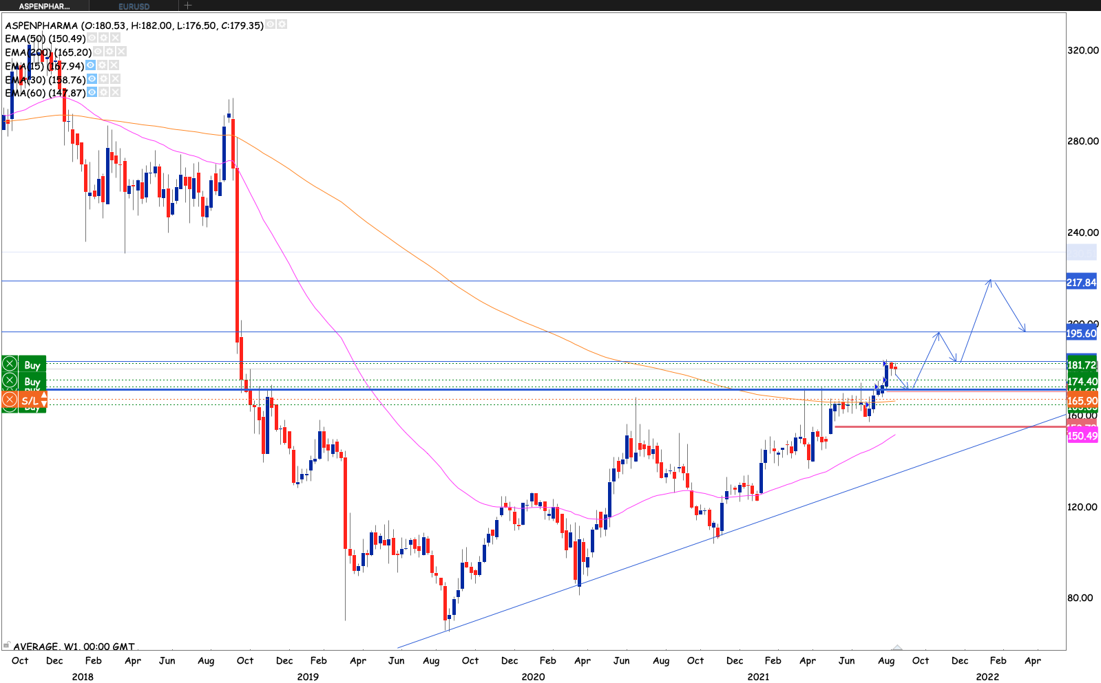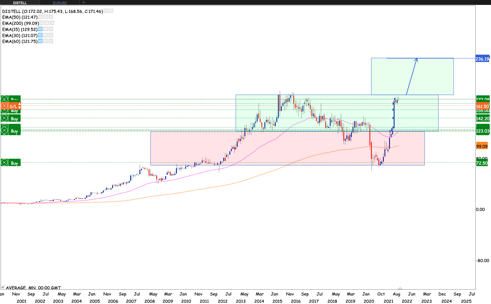 Apsen looking really good. Already having have broken the neckline of the multi-year ascending triangle pattern. Also breaking the 50 month EMA while at it. Levels to watch out for is R250, R290, R319, R375, R438