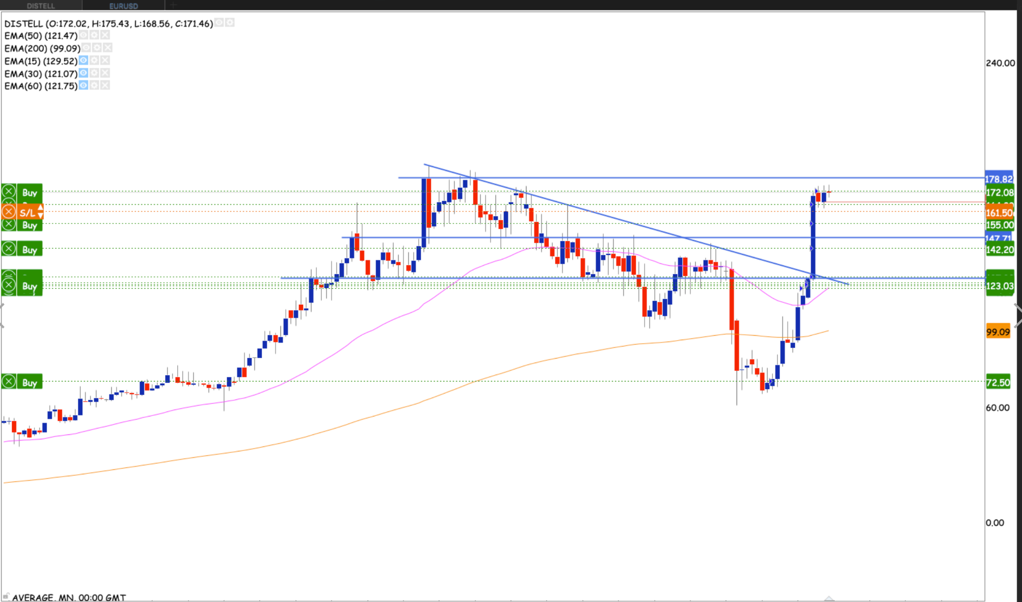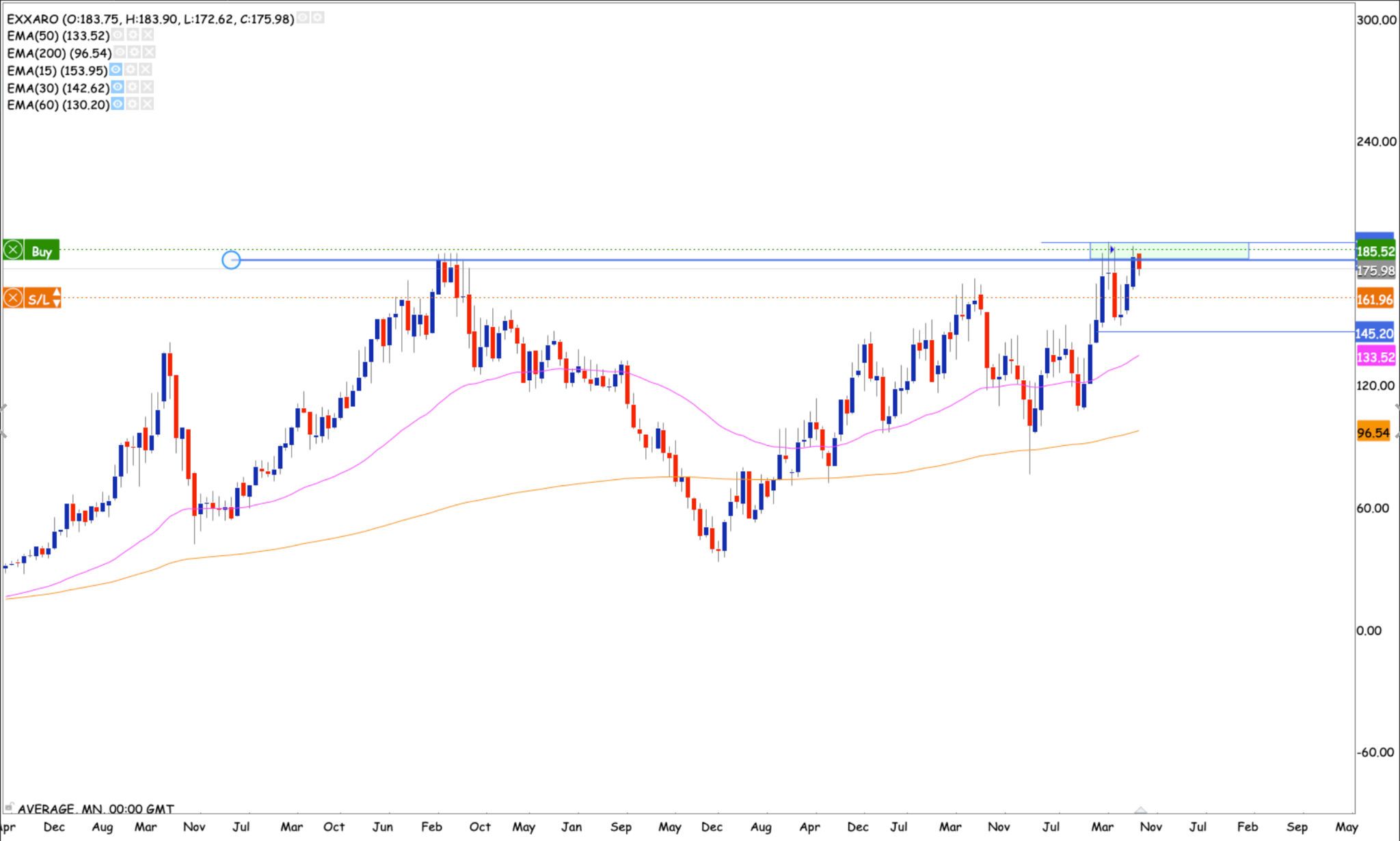 The Break above the 50 month EMA is also a break into the higher R140 – R200 a 45% Range. Nice range if one sit tight. If the stock can continue to run with a monthly close above R210 We could see the stock run as high as R264. completing a one bagger. Perhaps one of many you never know.