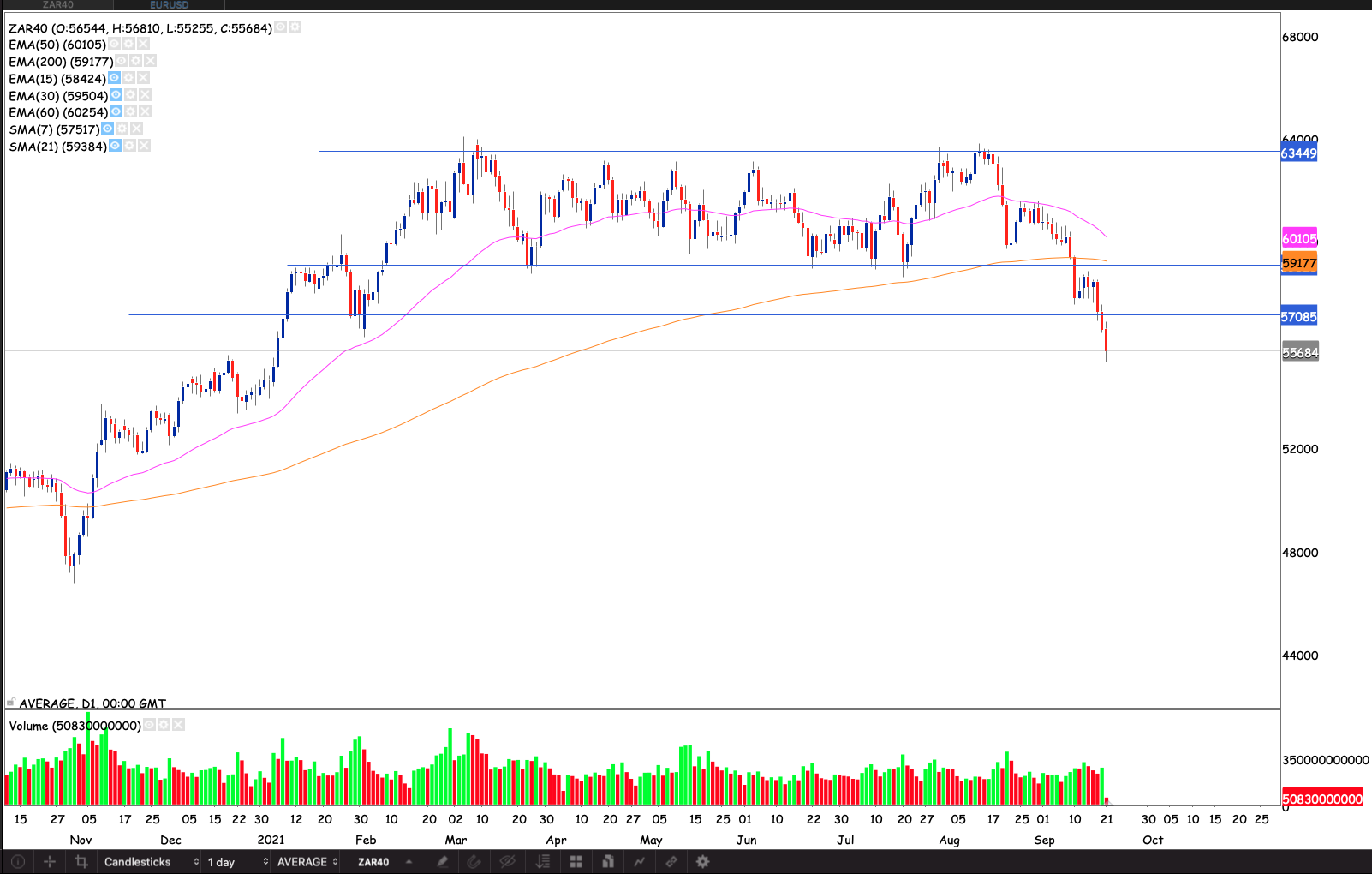 The JSE has had a tough couple of weeks particularly in the PGMs and gold miners. Dragging the top 40 index along with it. The Chinese crackdown on big tech didn’t help the Naspers. Because of its exposure to Tencent. The top 40 index slipped to a new 2021 lows.