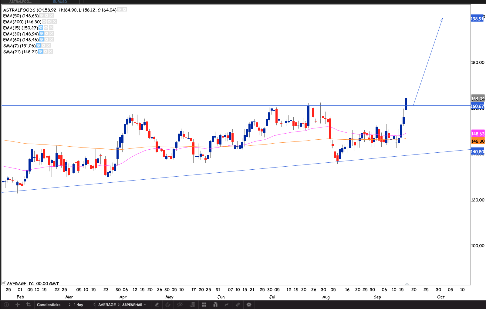 We have a nice ascending triangle pattern on the stock, the stock now back above the 50 day EMA. I will start building my position from above R20, however the level that will be of great significance will be the R208 level. We’ll see the stock really start to run if it can close through the R208 level.