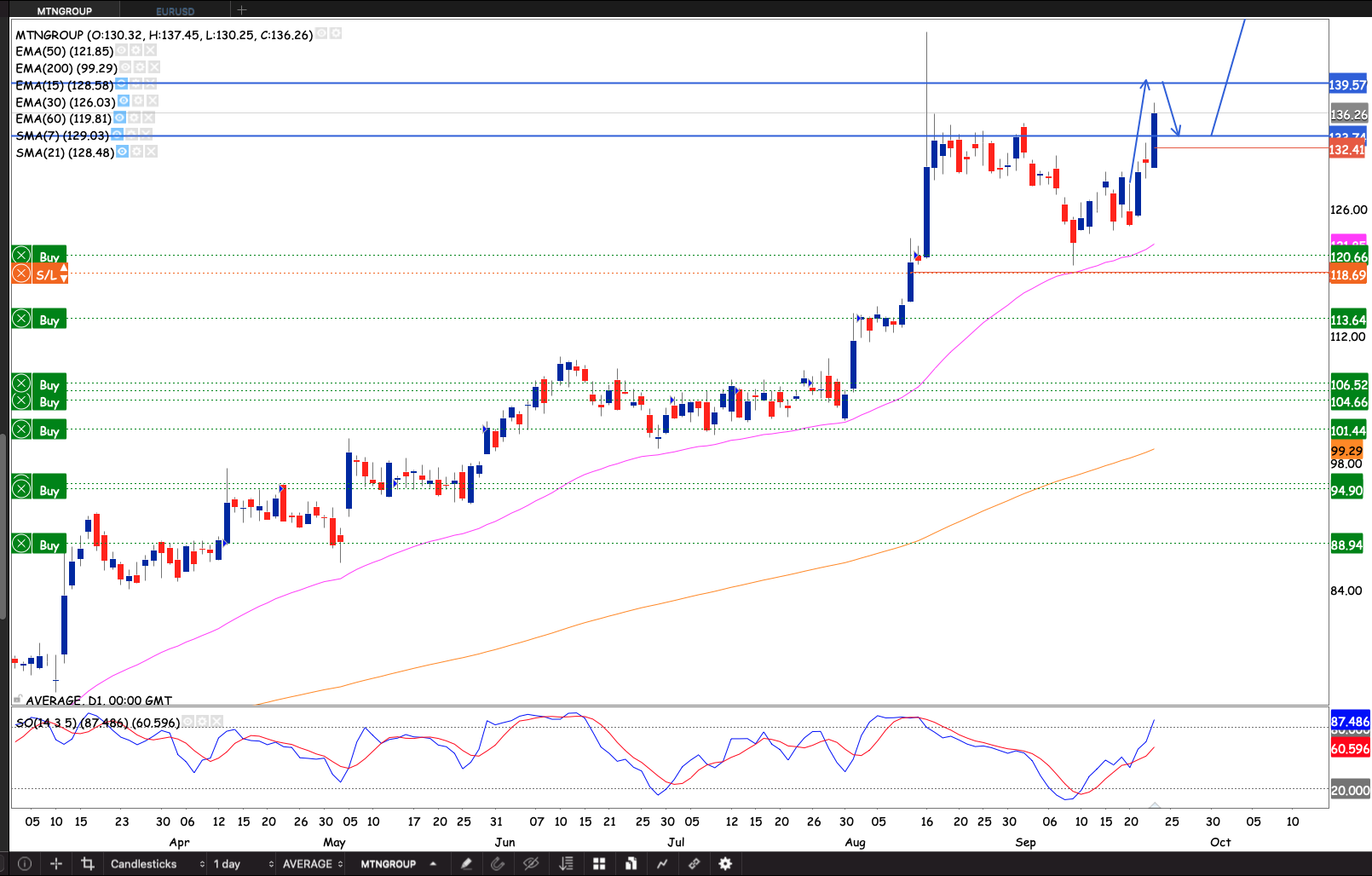 I will add again if the stock breaks through R139.50