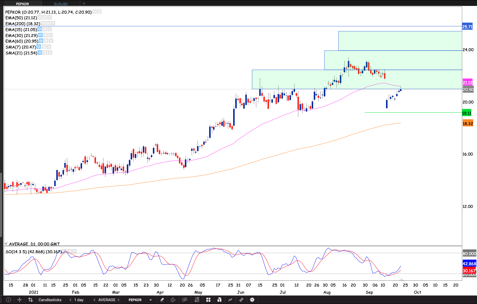 Steinhoff sold quite a chunk of their Pepkor shares in the open market at a discount. The market nonetheless like the stock. The market looking its closing the gap. On Thursday the market test the 50 day EMA from below. When the stock closes through the 50 day EMA as it reenters a higher box. I will rebuild my position