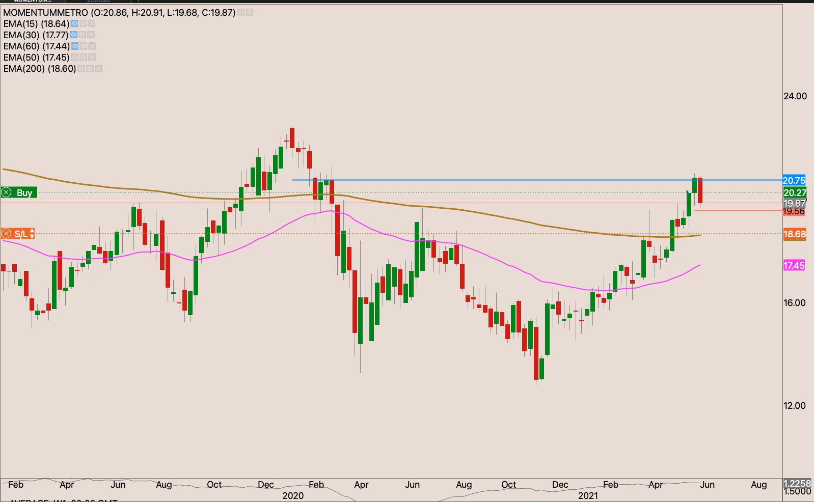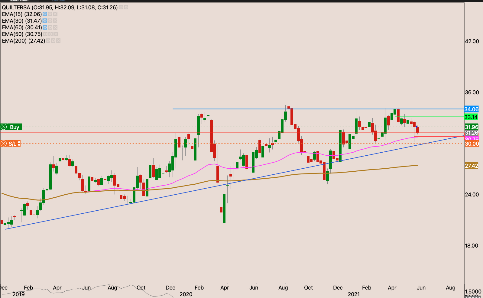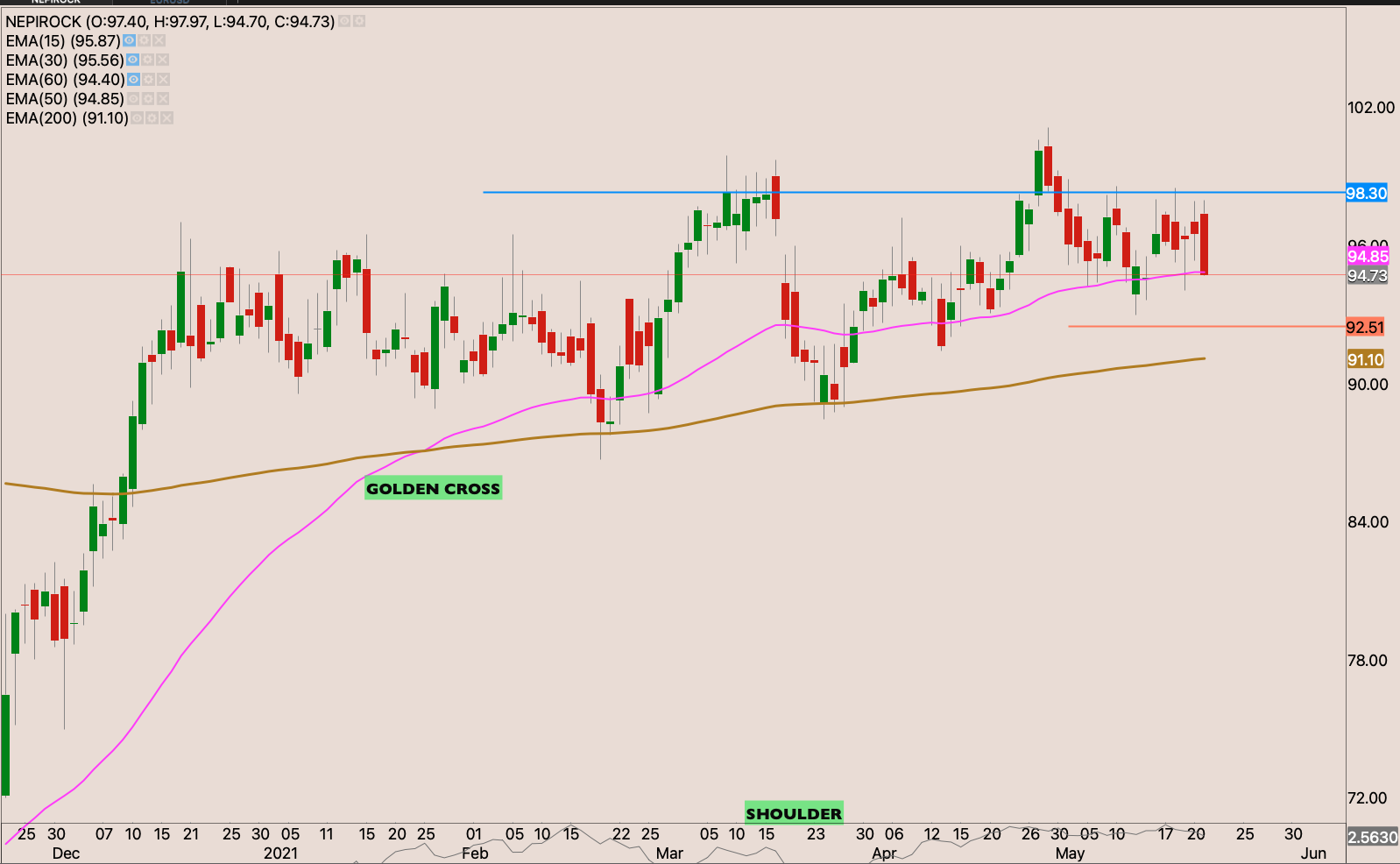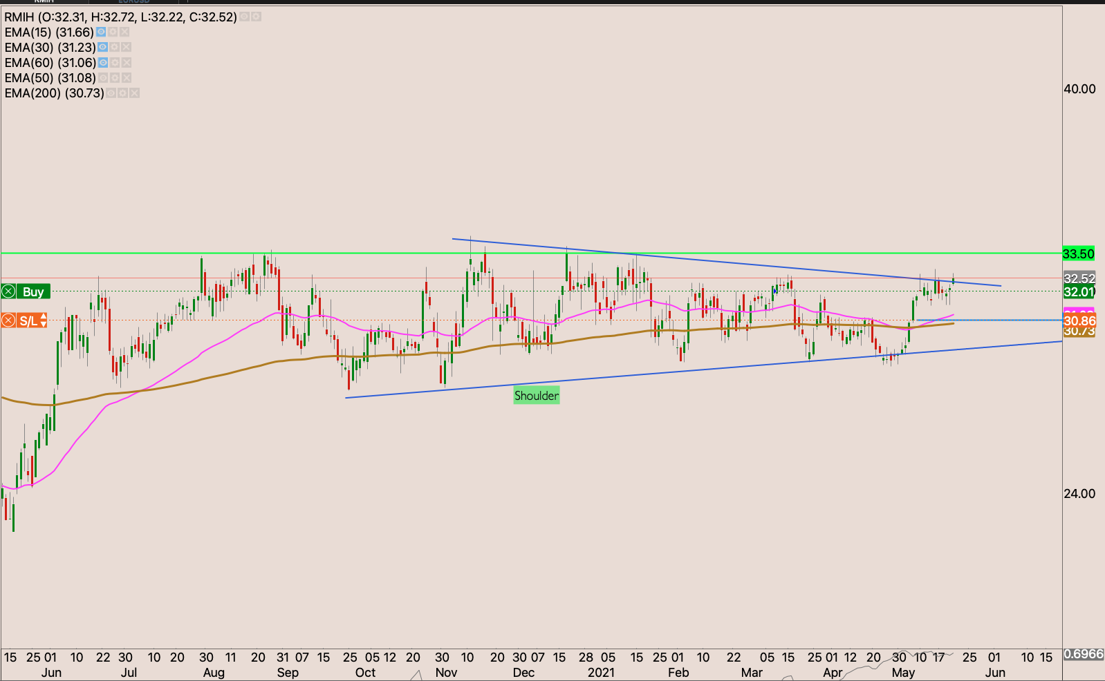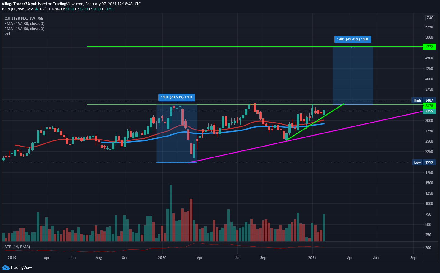 We have a golden cross on the stock. It close bang on the resistance on Friday. Perhaps it was genuine resistance or sellers were saved by the bell. I’m waiting to see how the market reacts this week. If it continues to break. I will start building a position on the stock