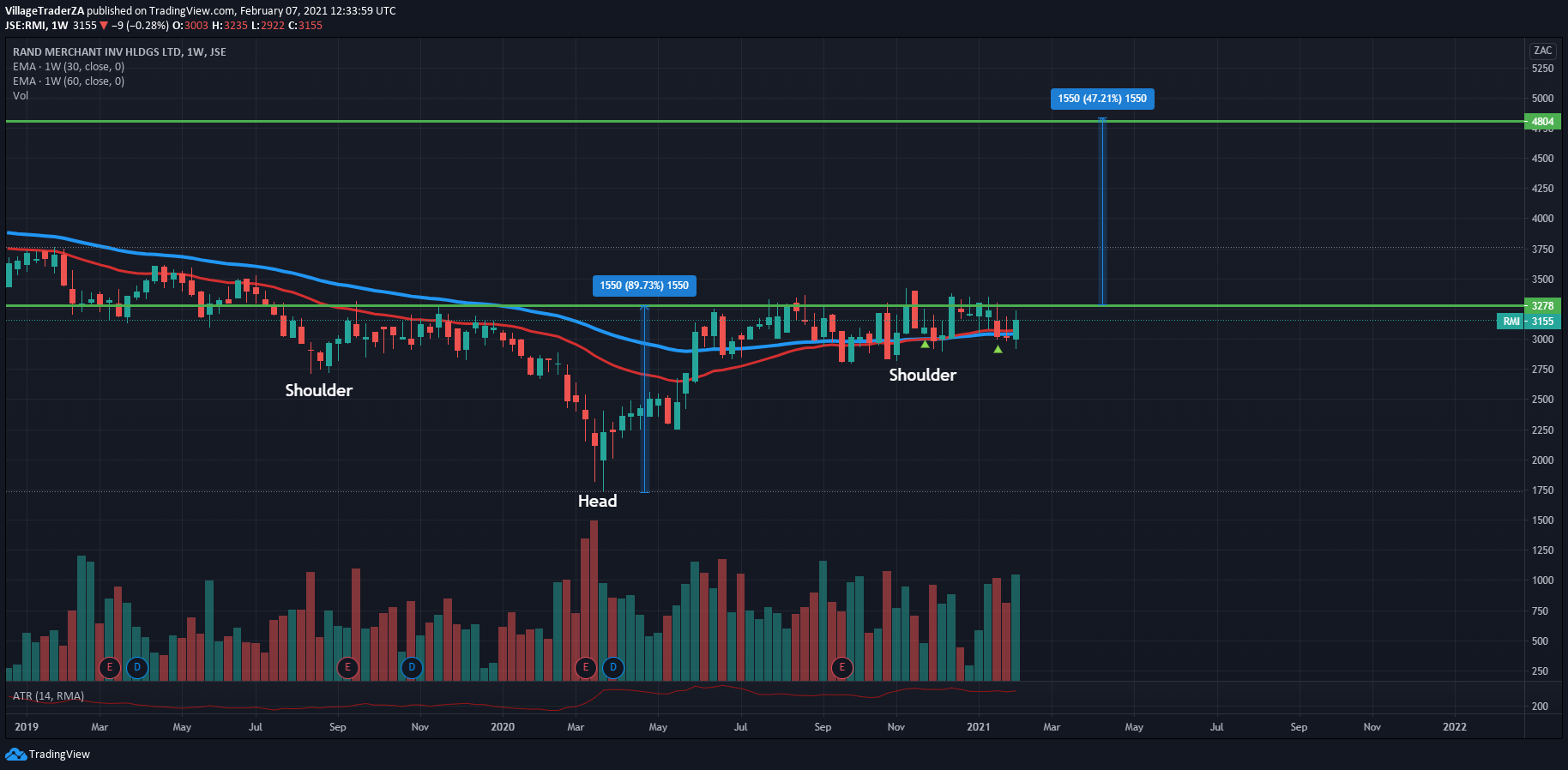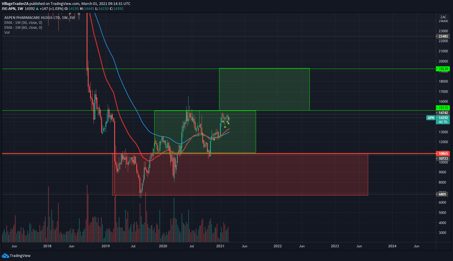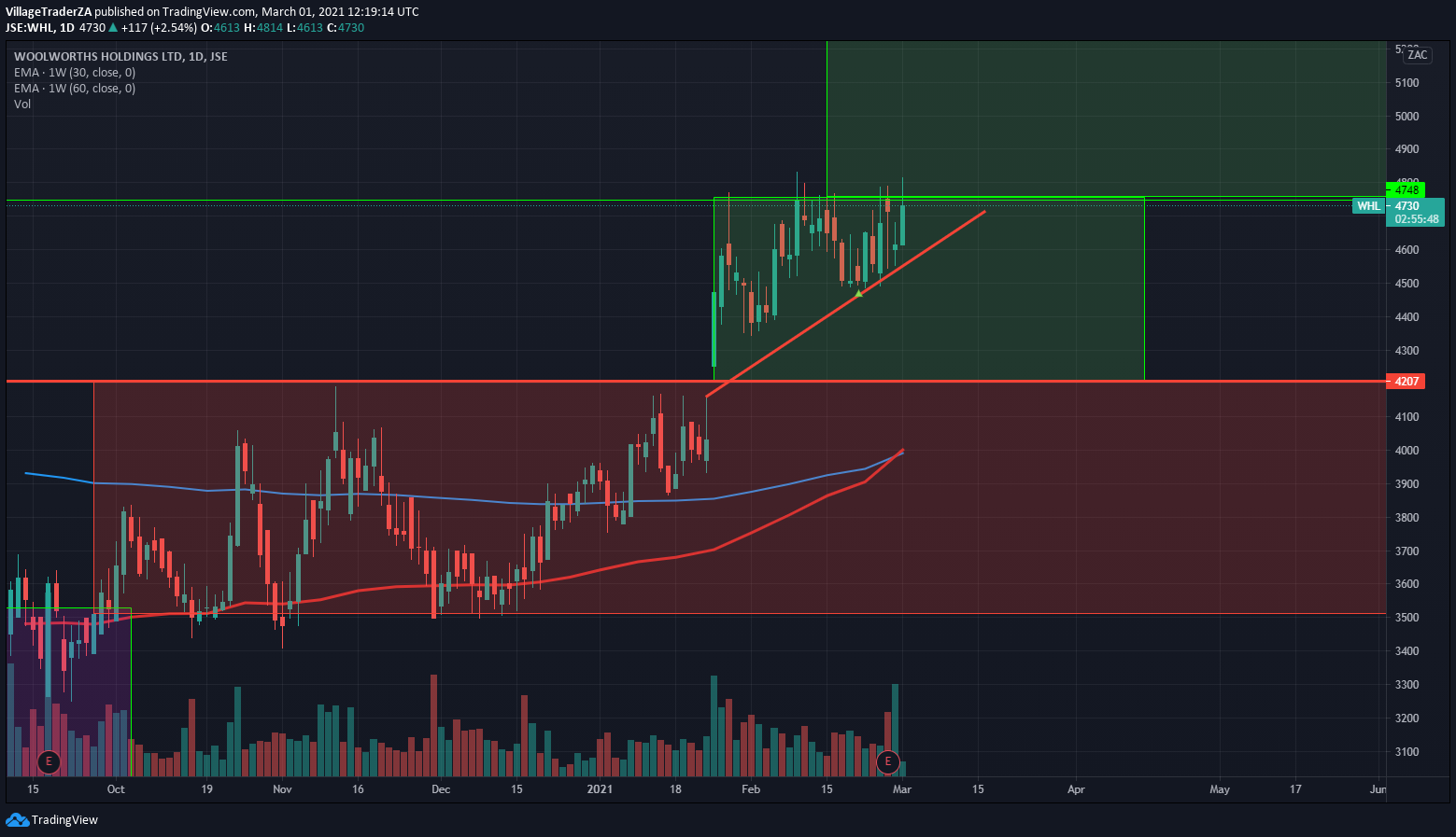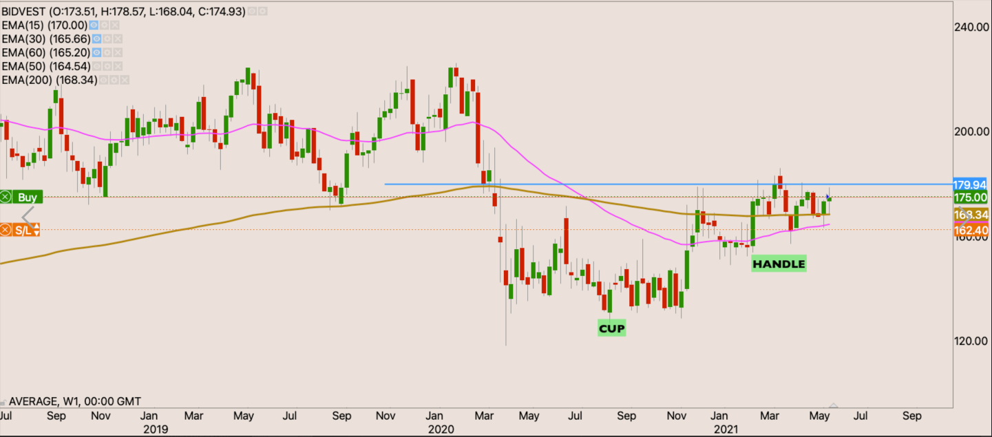 I’m currently waiting for the stock to take the current relative 52 week high.. The company has results coming in 3 weeks, perhaps there lies in a catalyst that will propel the stock higher. If we get a new high close on the daily chart above R192. I will increase my holding in the position.