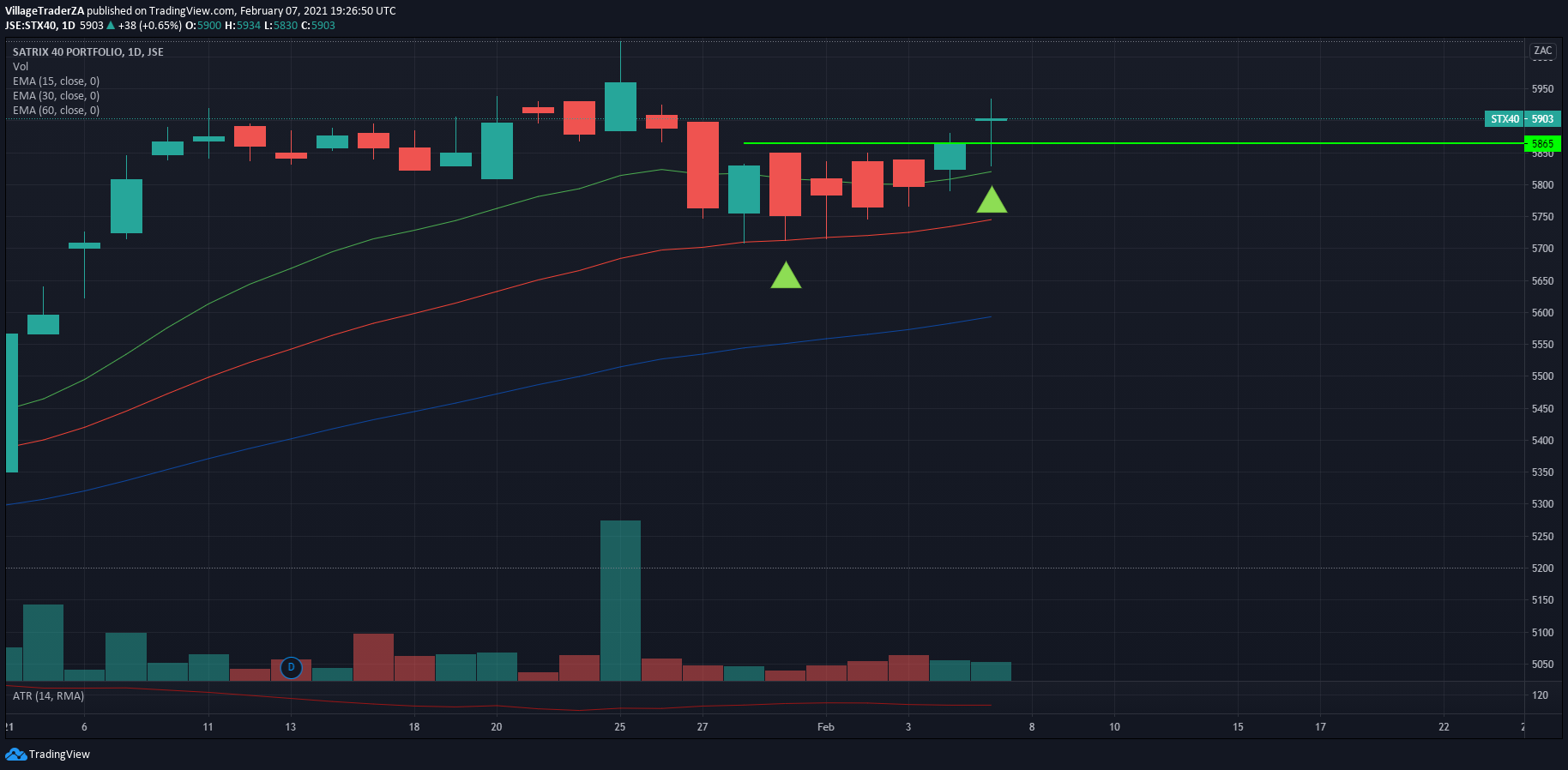 We have a stop loss triggered. The ETF closed below the 30-day EMA as the Naspers & Prosus got hammered by the market last week. Going to be exiting the trade at the open on Monday