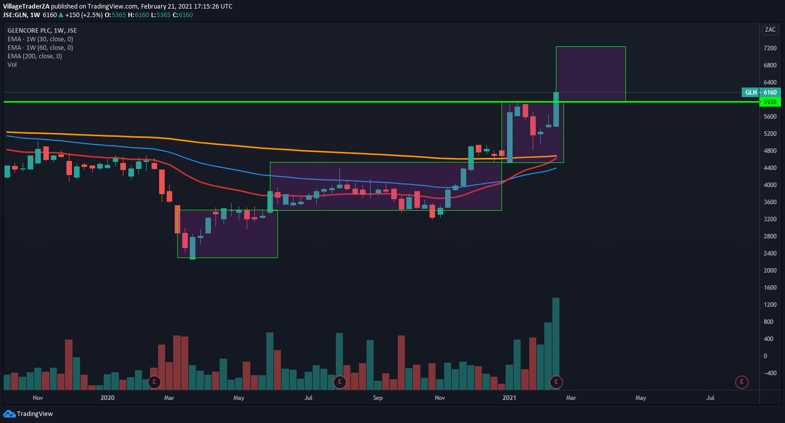 The medical stocks have been on a quietly non-volatile uptrend recently. With Covid-19 regulation starting to ease off in time. We will likely see the rise in elective surgery, as pent up demand comes back to the market, post vaccination roll-outs . A big driver of revenue for medical stocks. Life Healthcare and Netcare leading the pack. Netcare stock broke out from a short term consolidation on Friday. I will add to my position at the open on Monday. I’ve raised my stop loss to R16.04