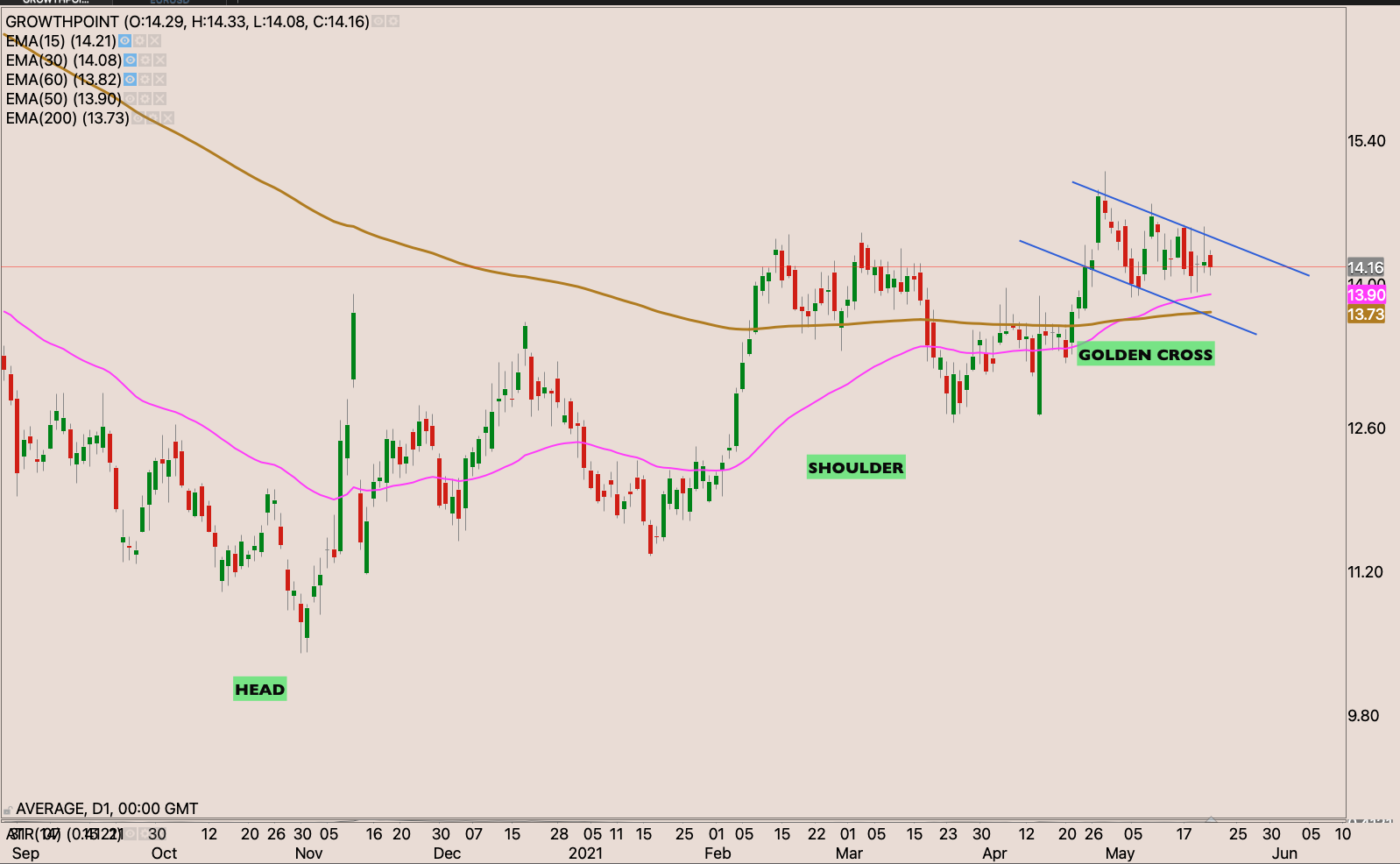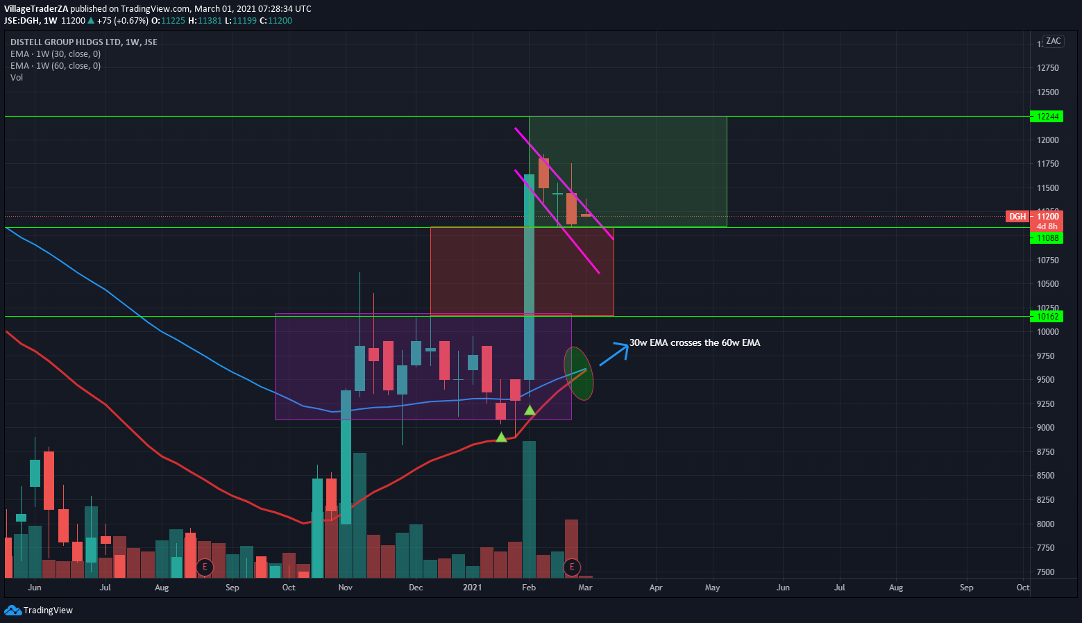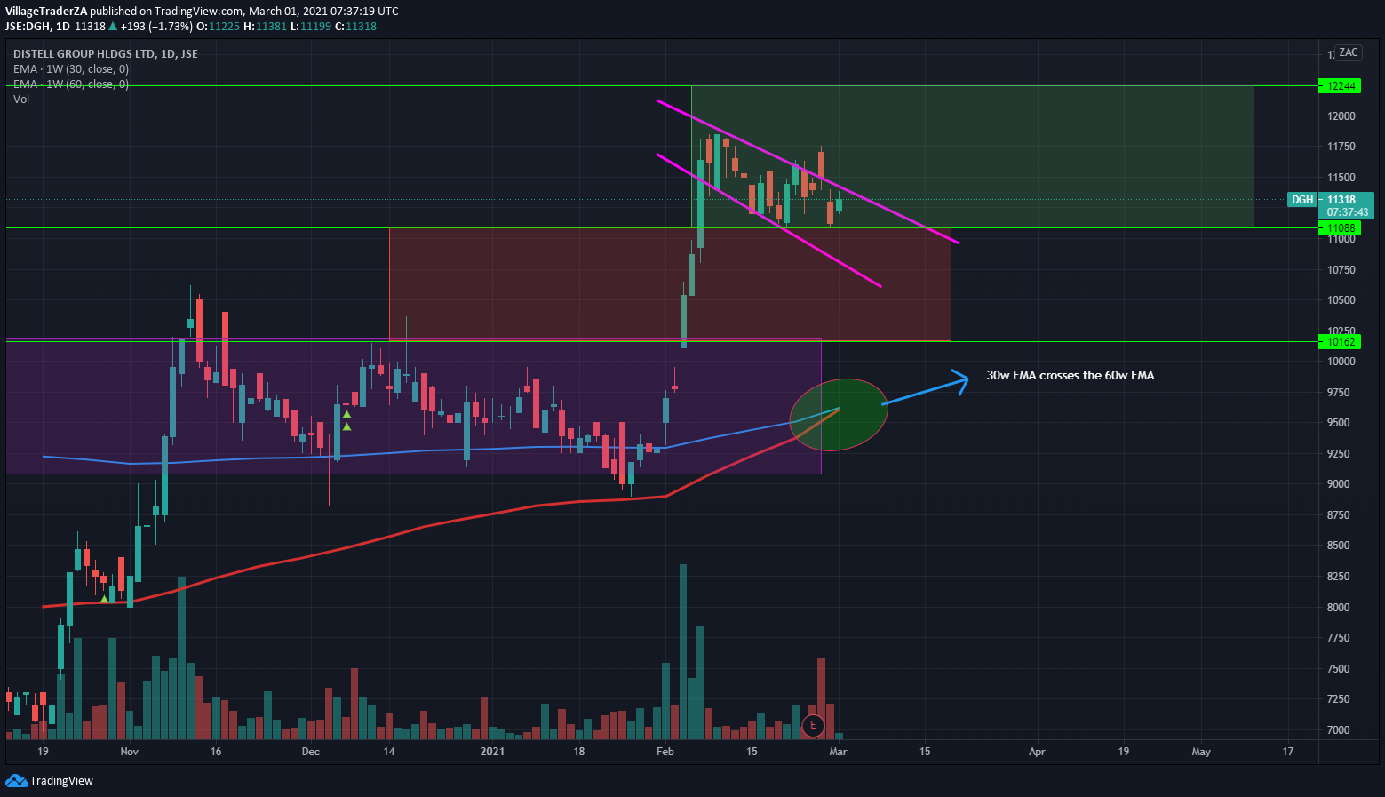 We had a golden cross as the stock was not moving very much. It made a big move on Friday at the back of a cautionary statement. about negotiations currently on going but said nothing further from that. My opinion is that there’s a possible buyer and a possible delisting in the horizon but will see in time.