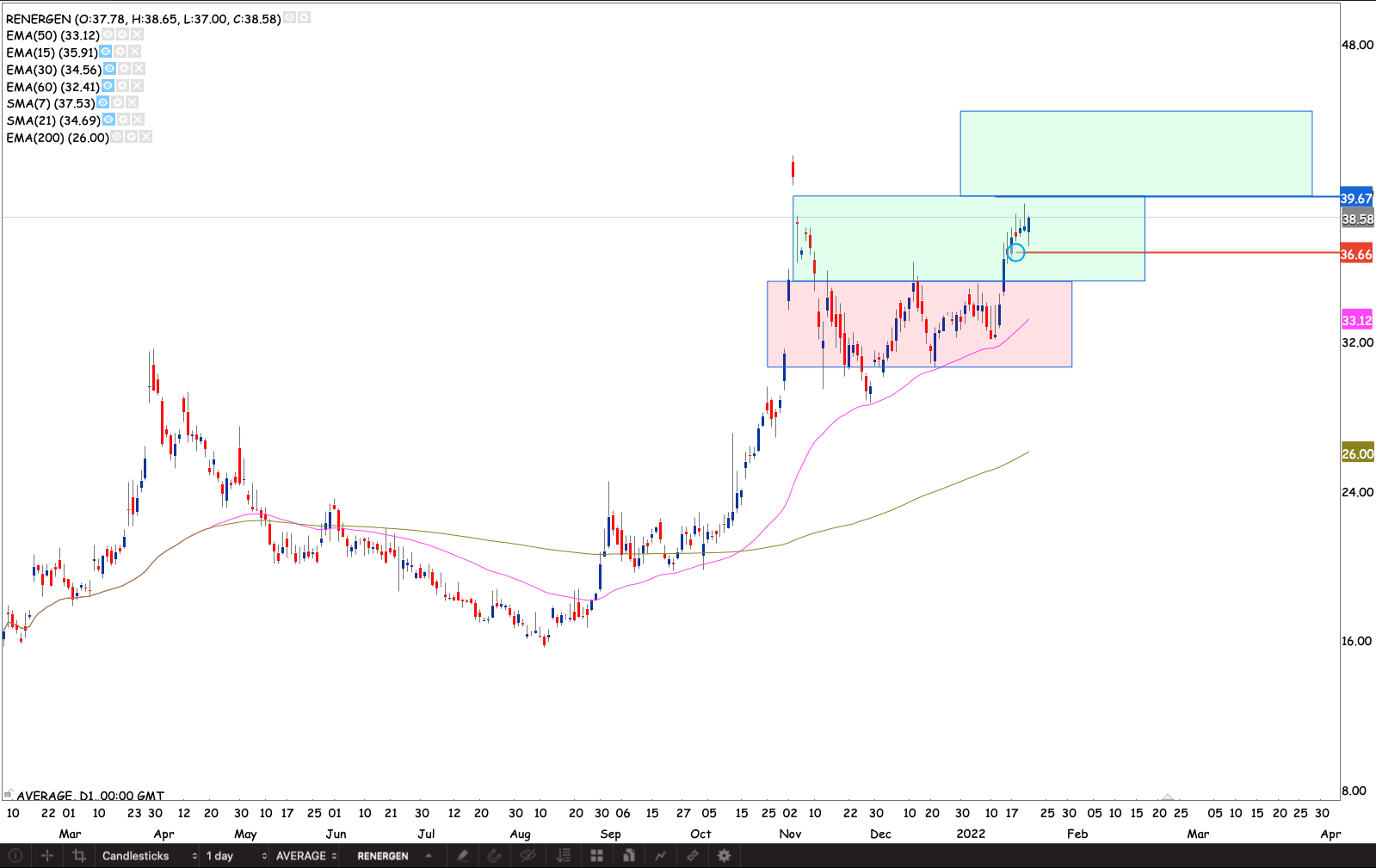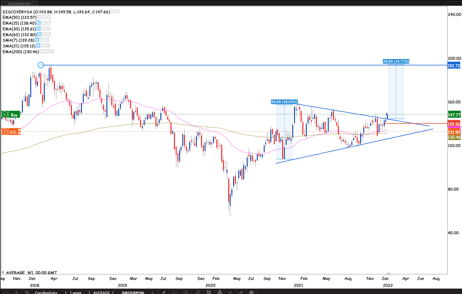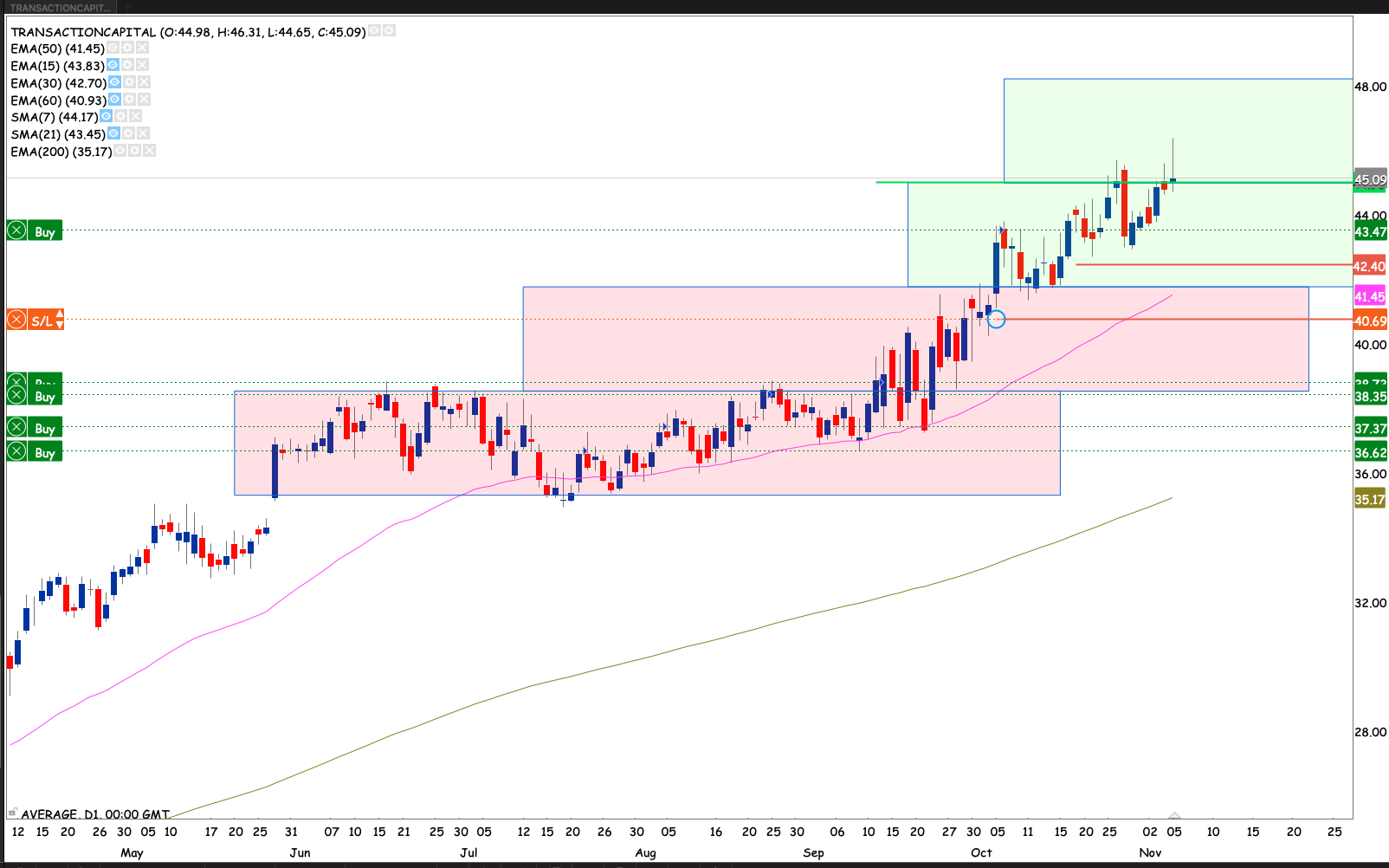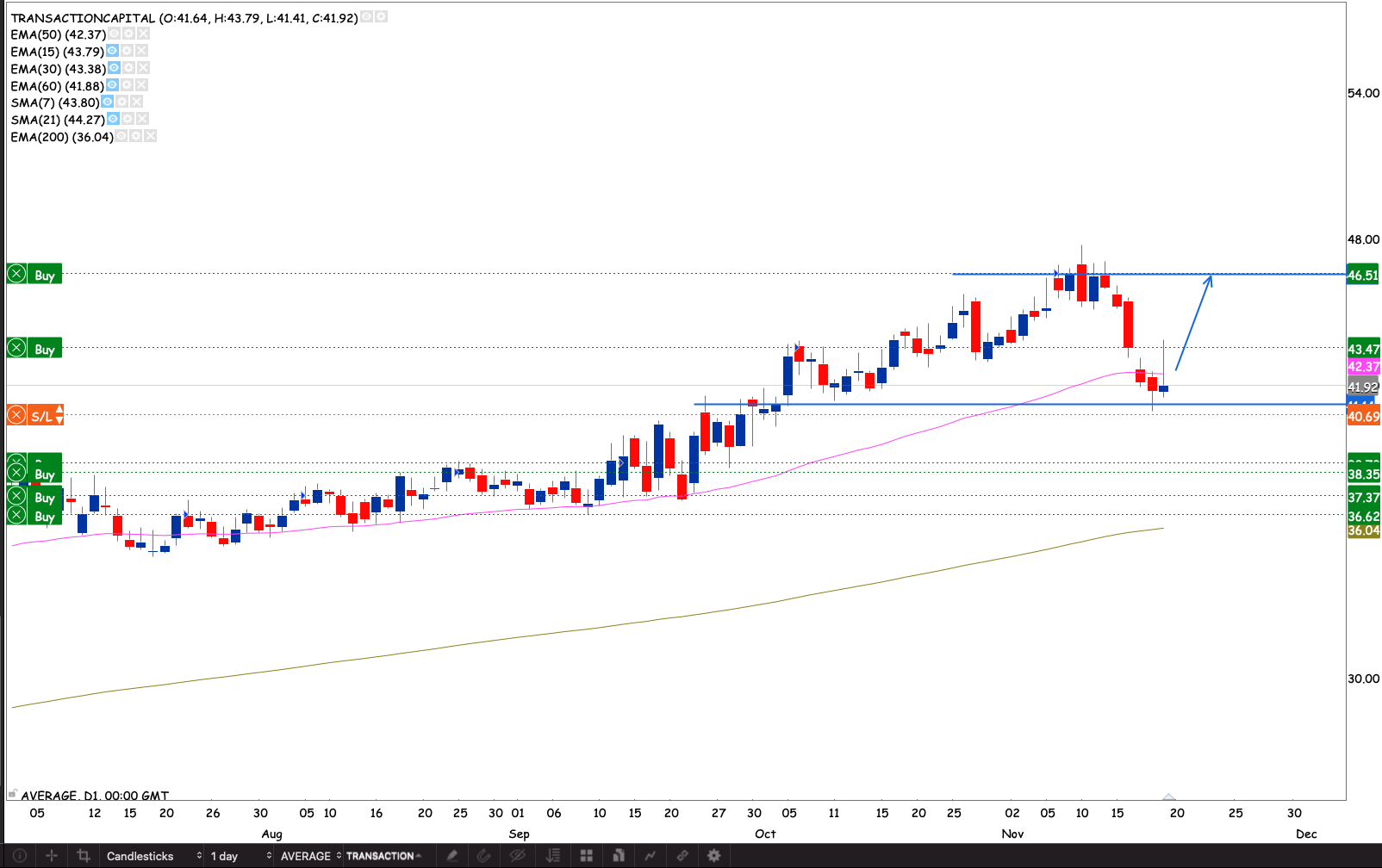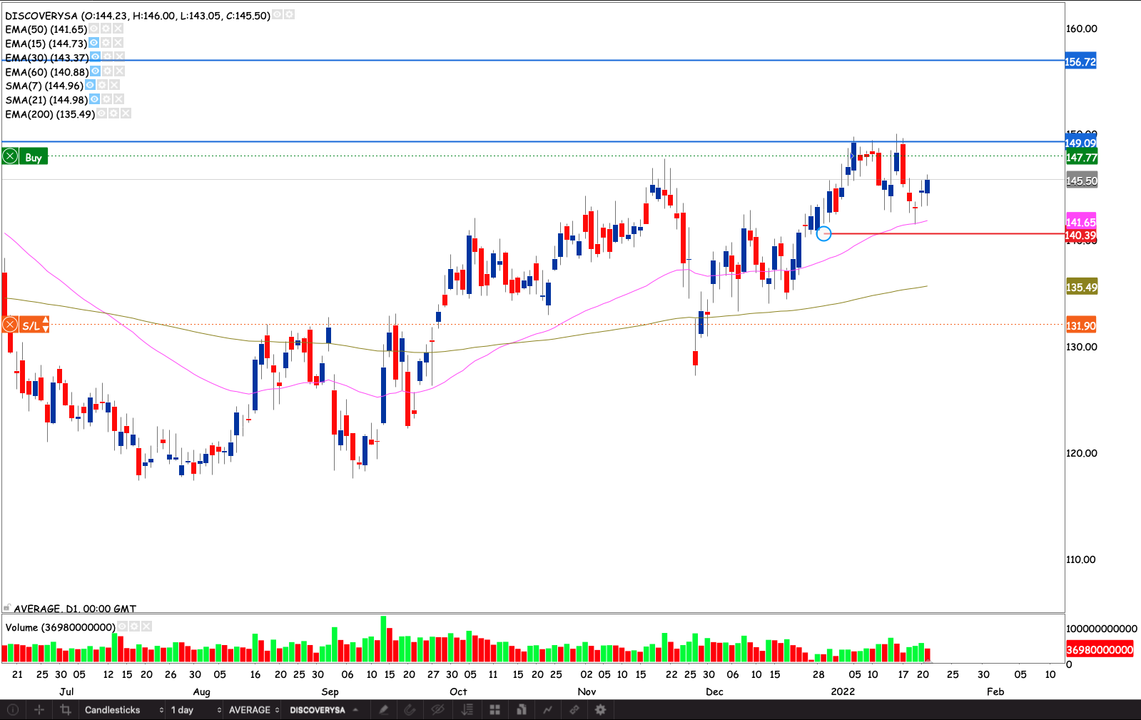 I like how Dischem is moving at the moment. There’s an old resistance at R39 which seems to hold so far. We last saw these prices in 2018. If the market can break above R39. I will raise my stop loss to R36.62 and add to the position.
