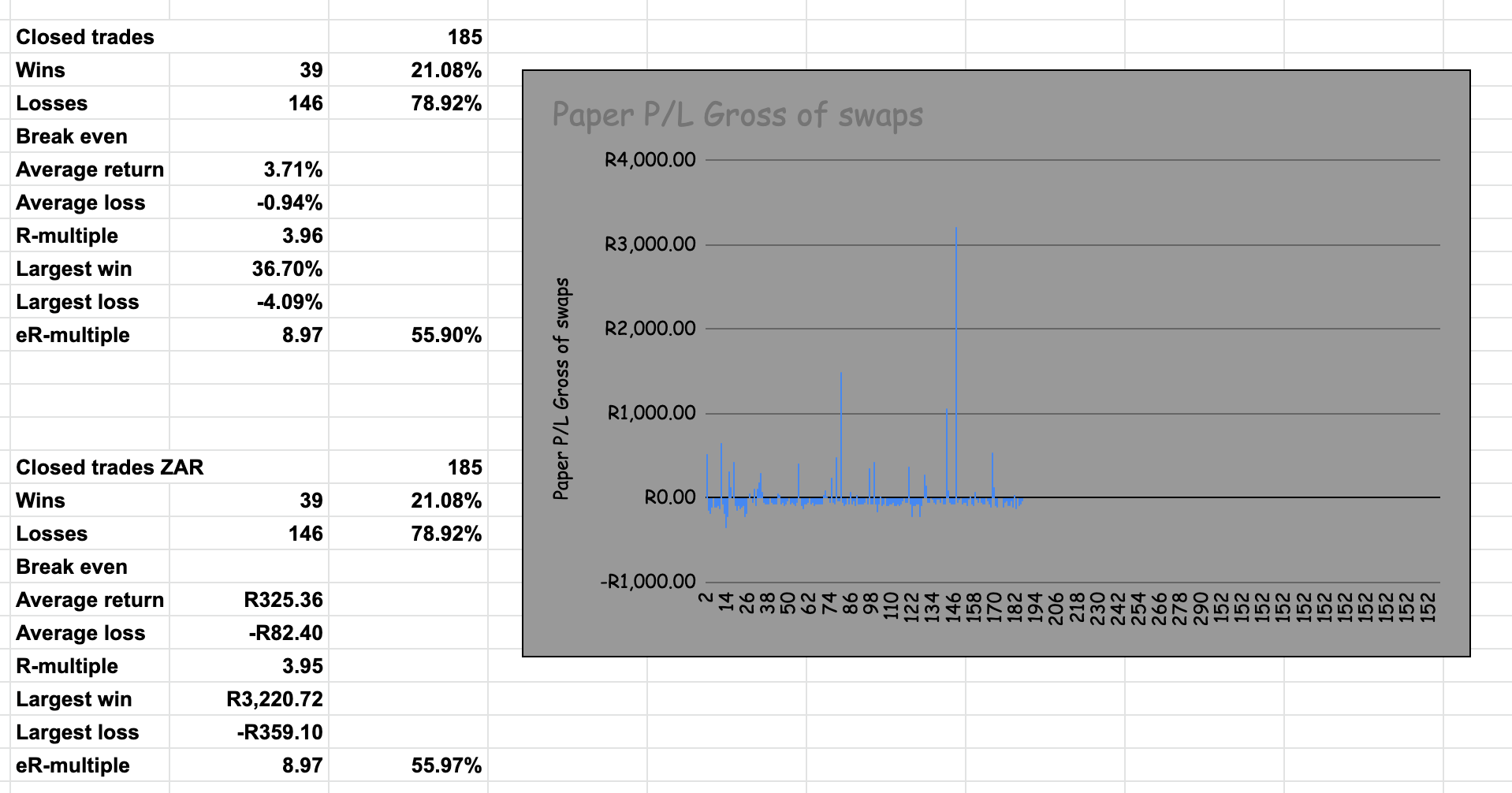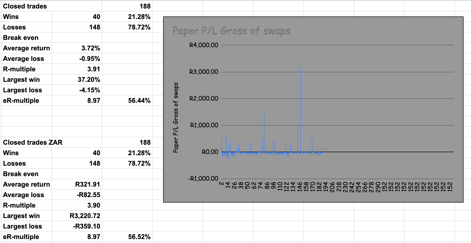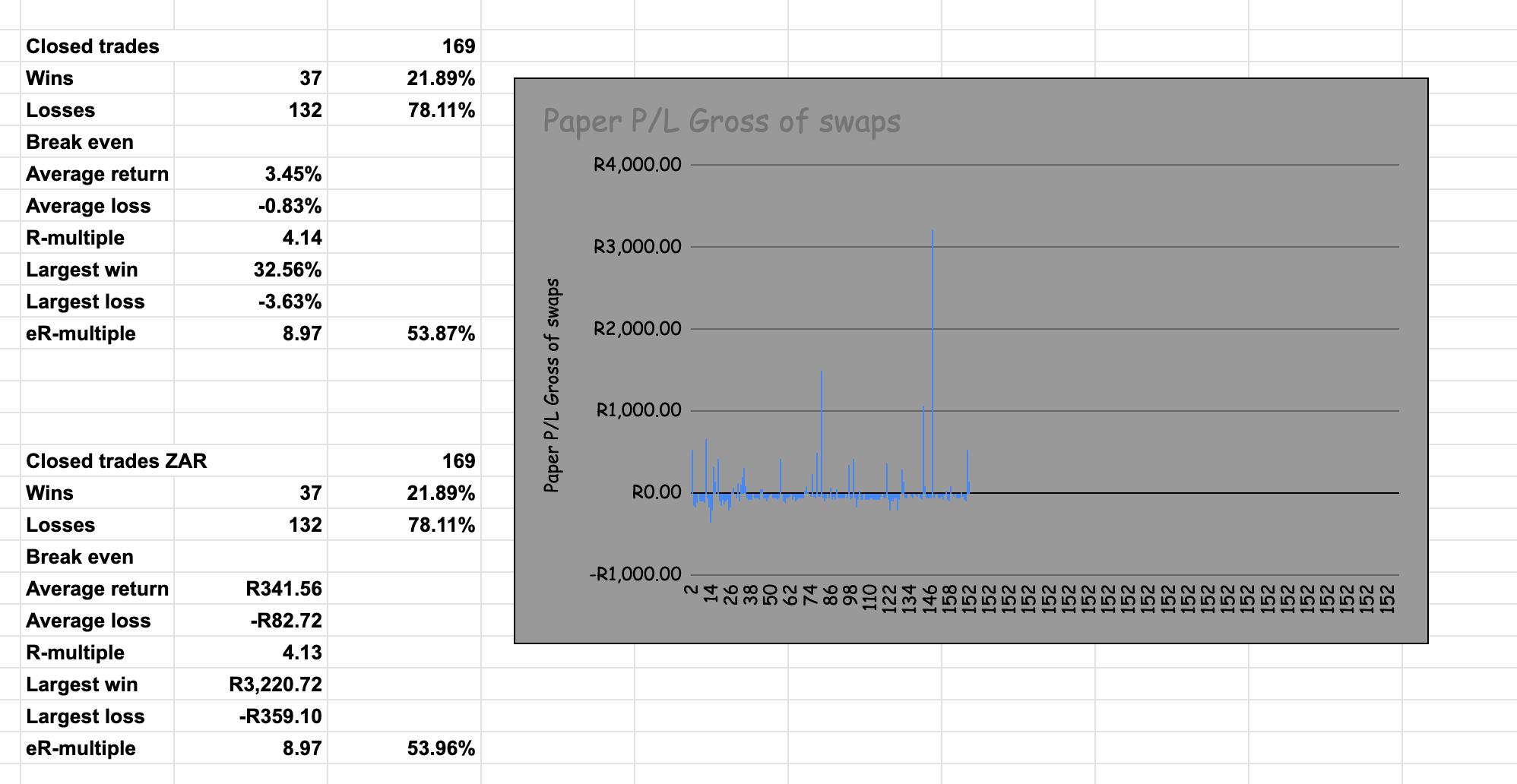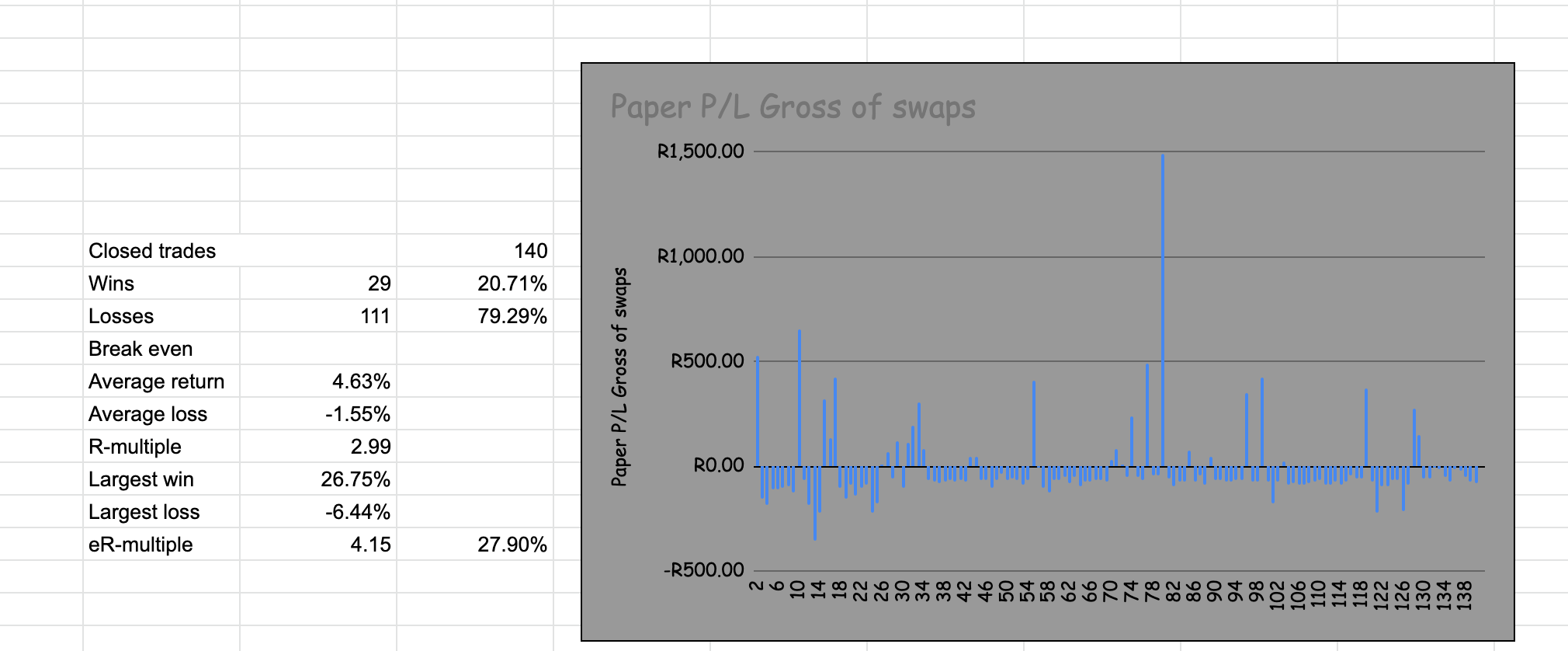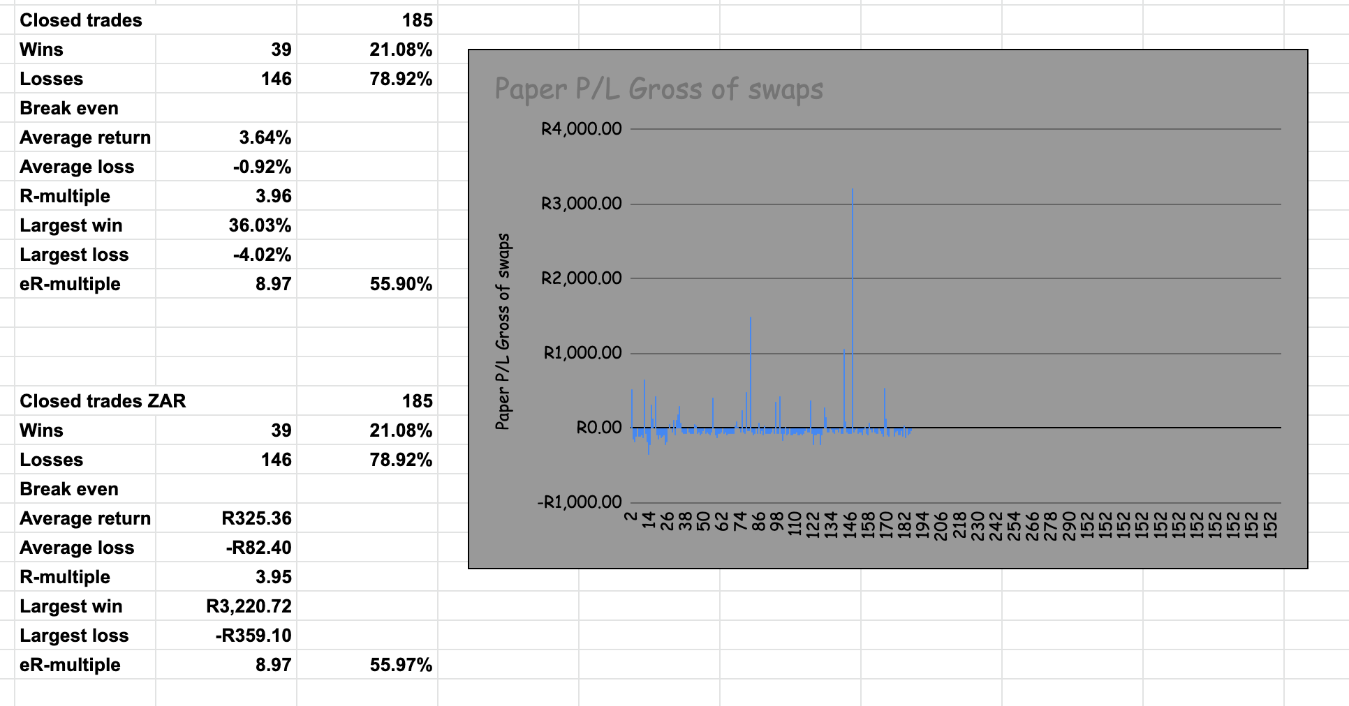 Current Equity (Balance including paper P&L): R21 014.6 +139.51%
