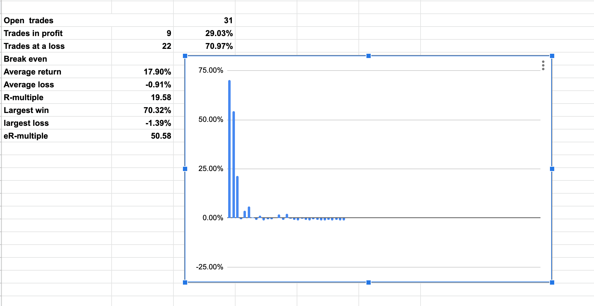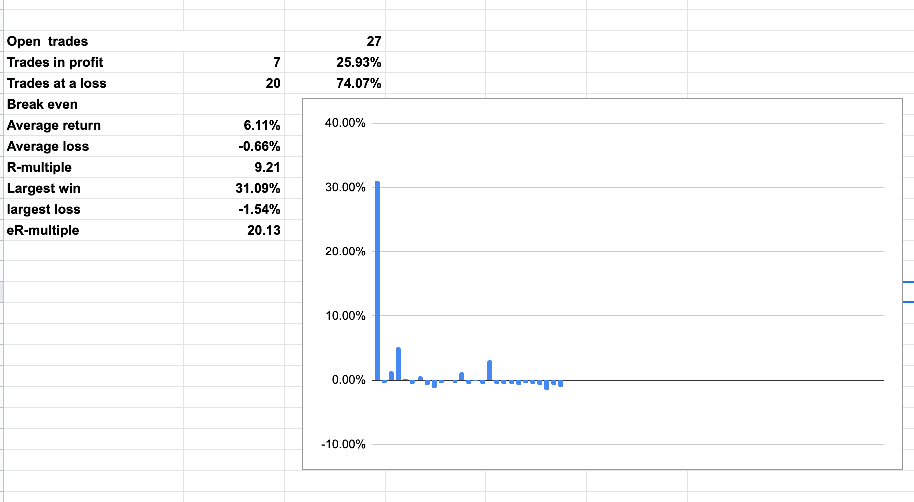 The stock made a new 52 week high coming back above the 200 week EMA for the first time In over a year. The stock has been stuck in a range for a while. I started building up a position. Trailing my top at the minute to R284.07 reducing my risk to -0.35%