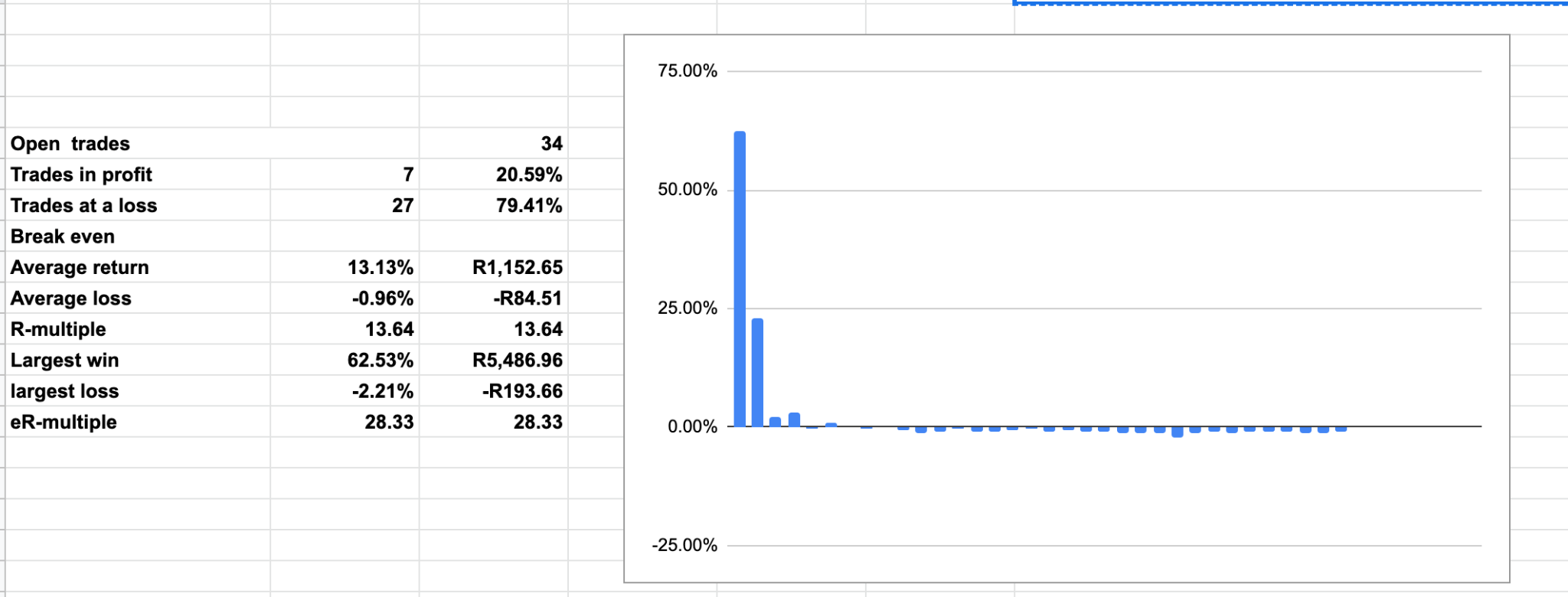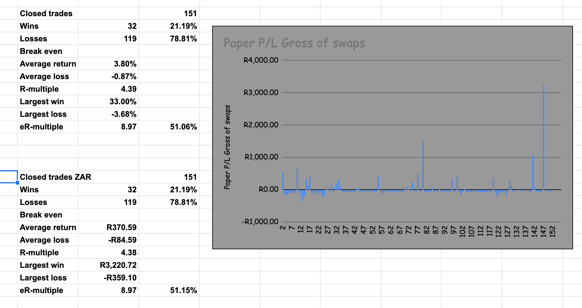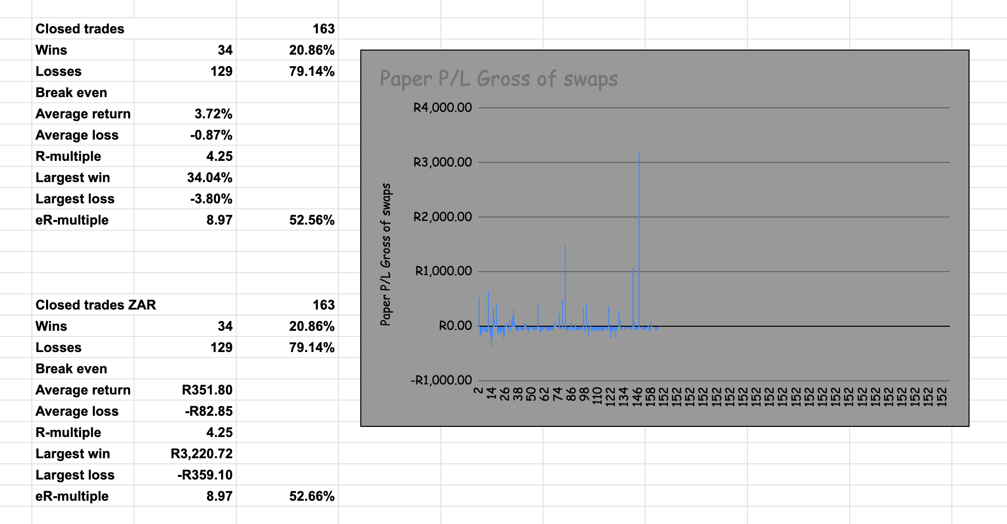 Current Equity (Balance including paper P&L): R25 280.42 +145.35%