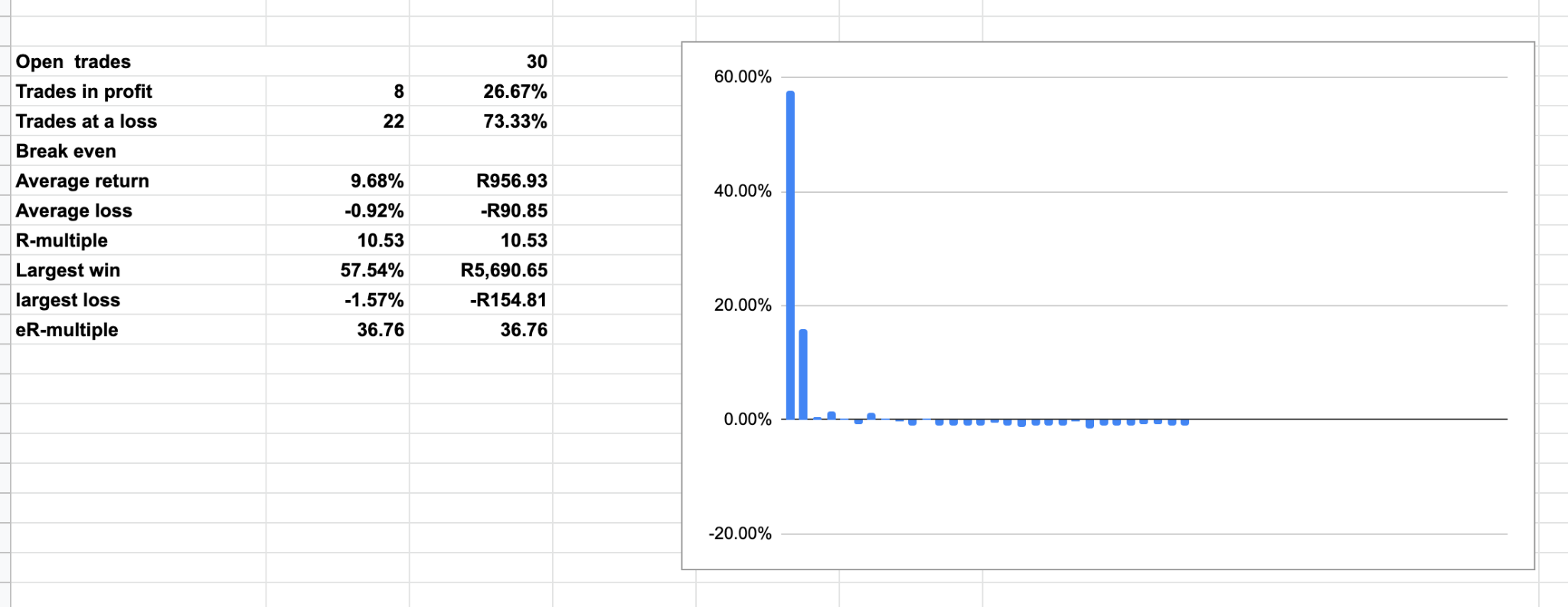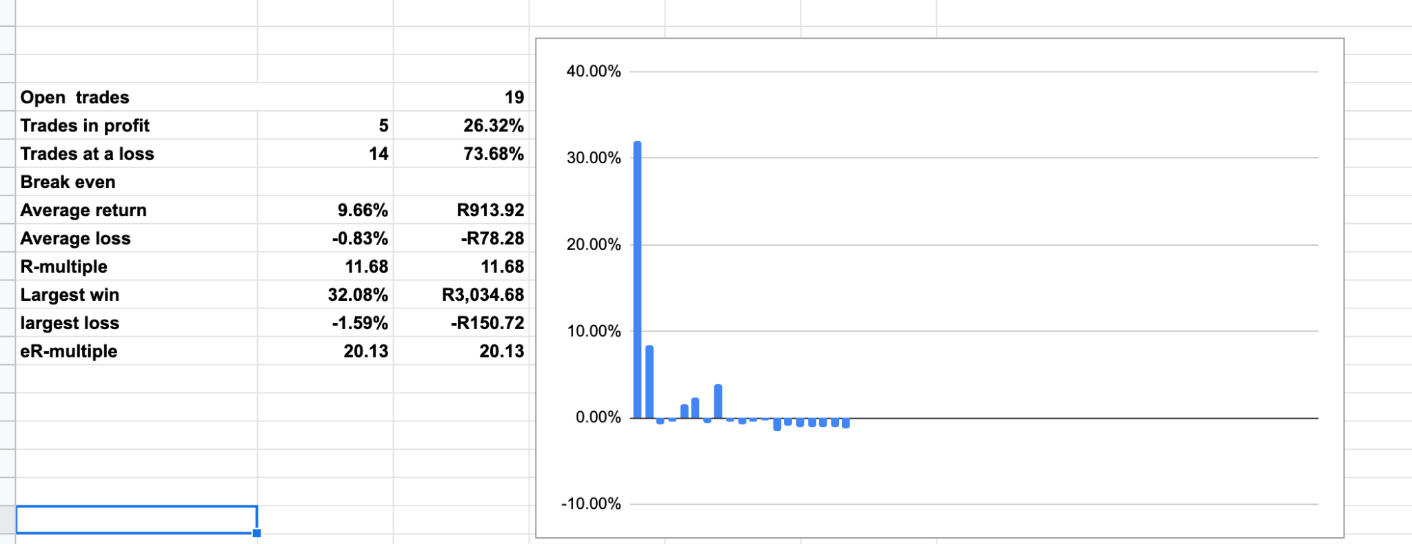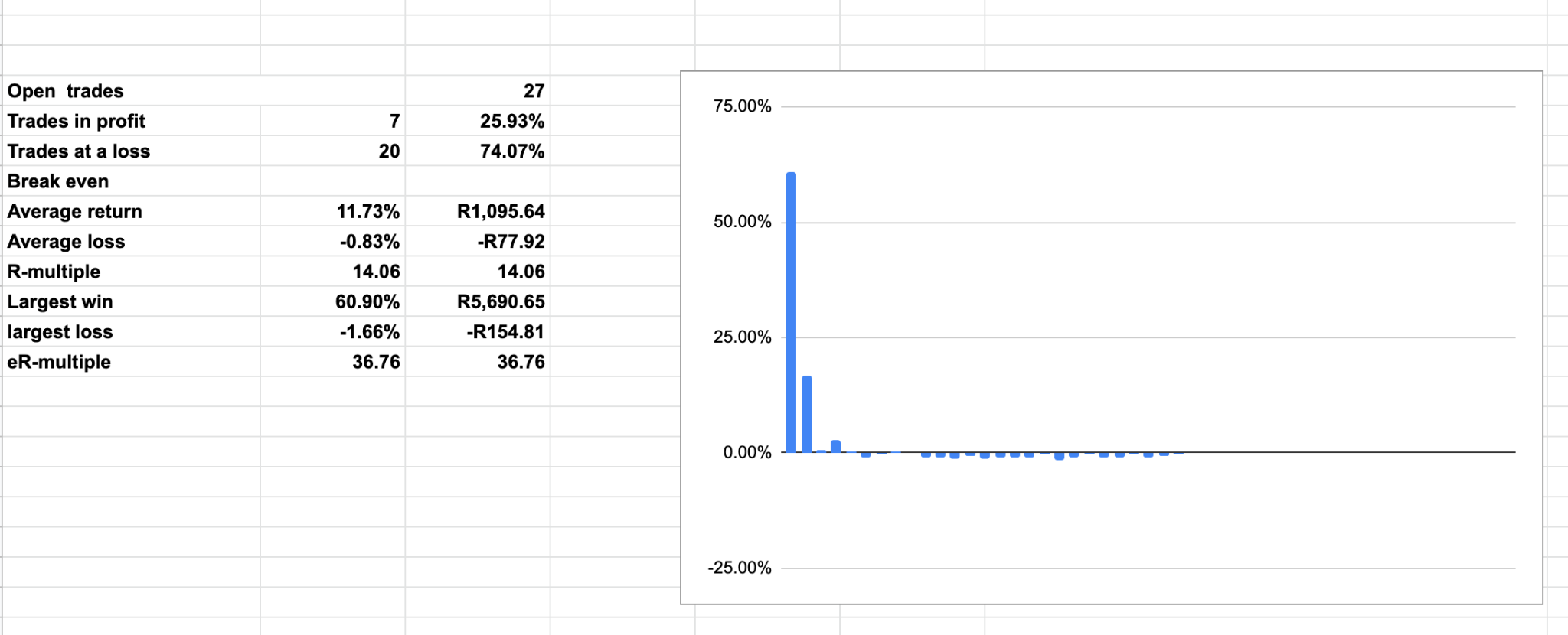Current Equity (Balance including paper P&L): R25 280.42 +145.35%