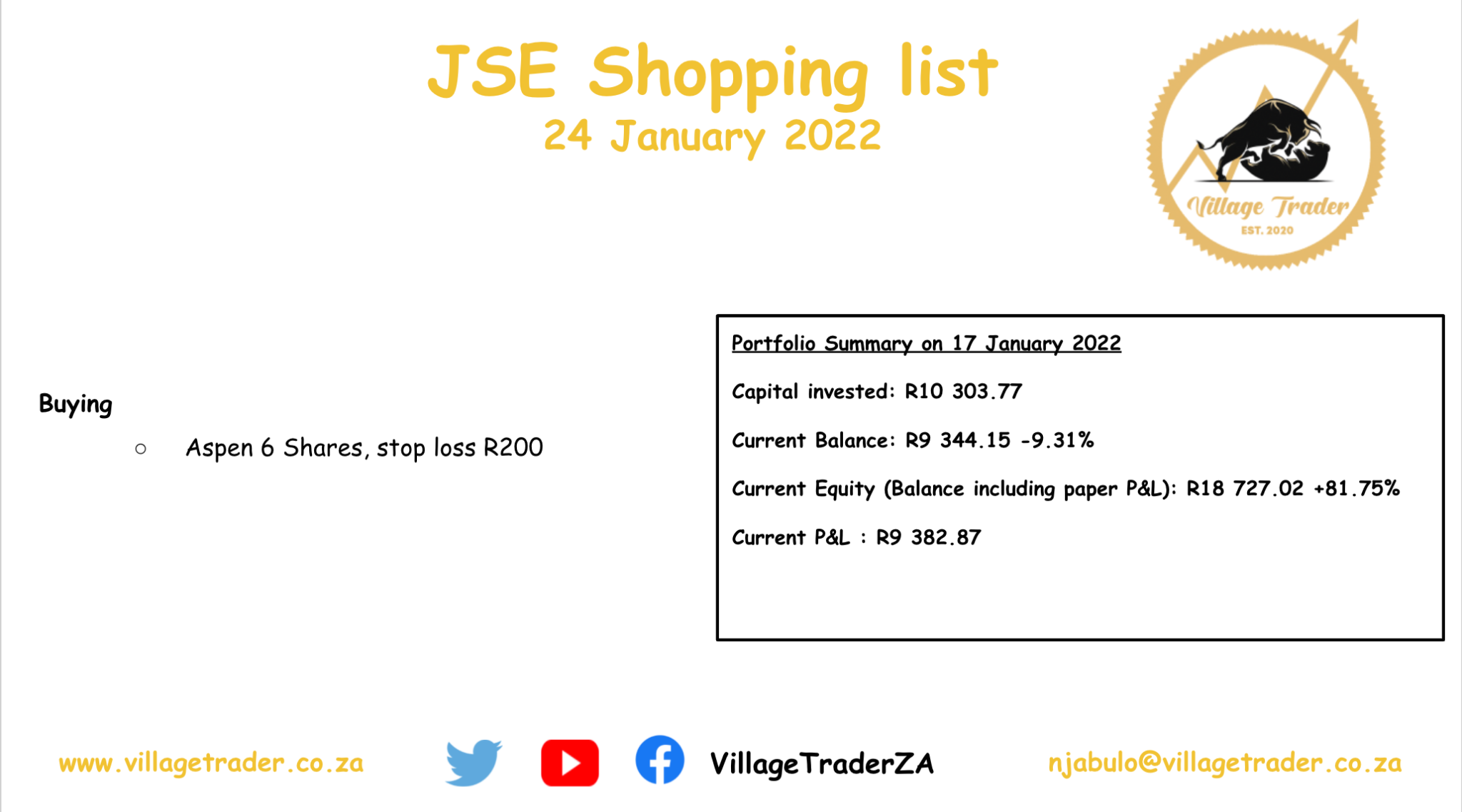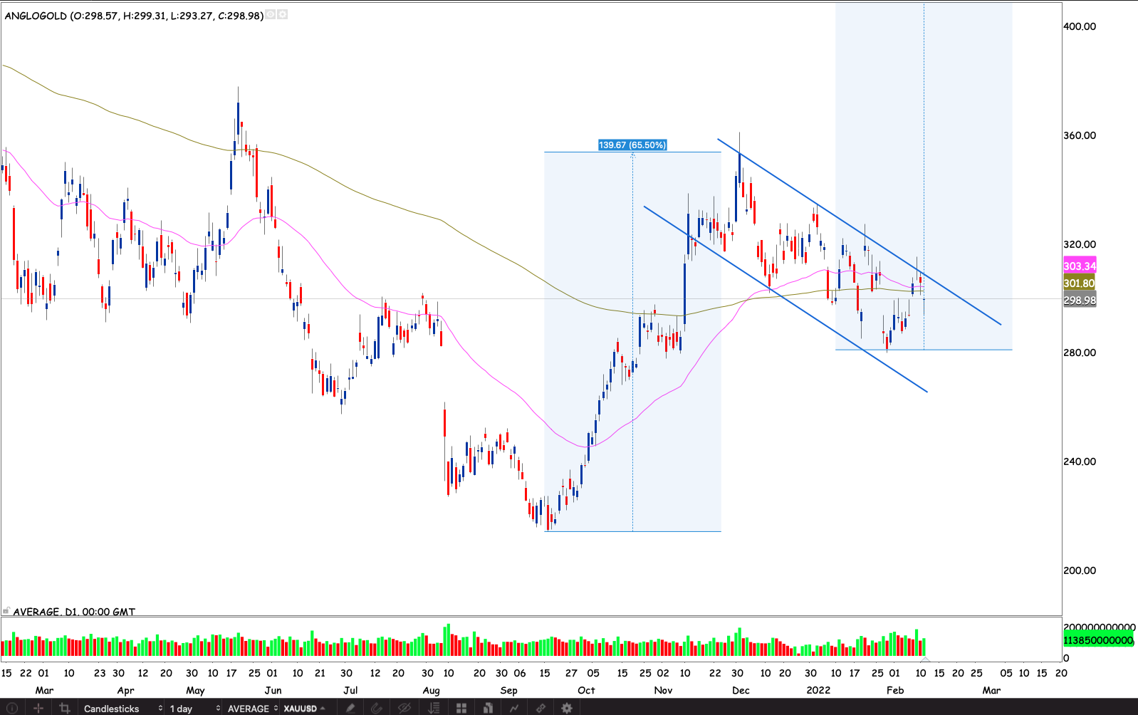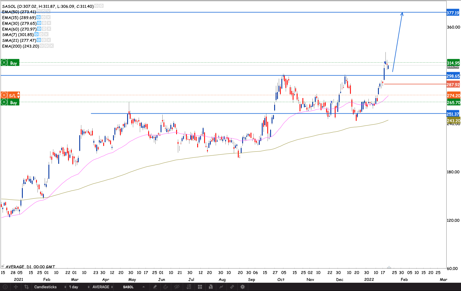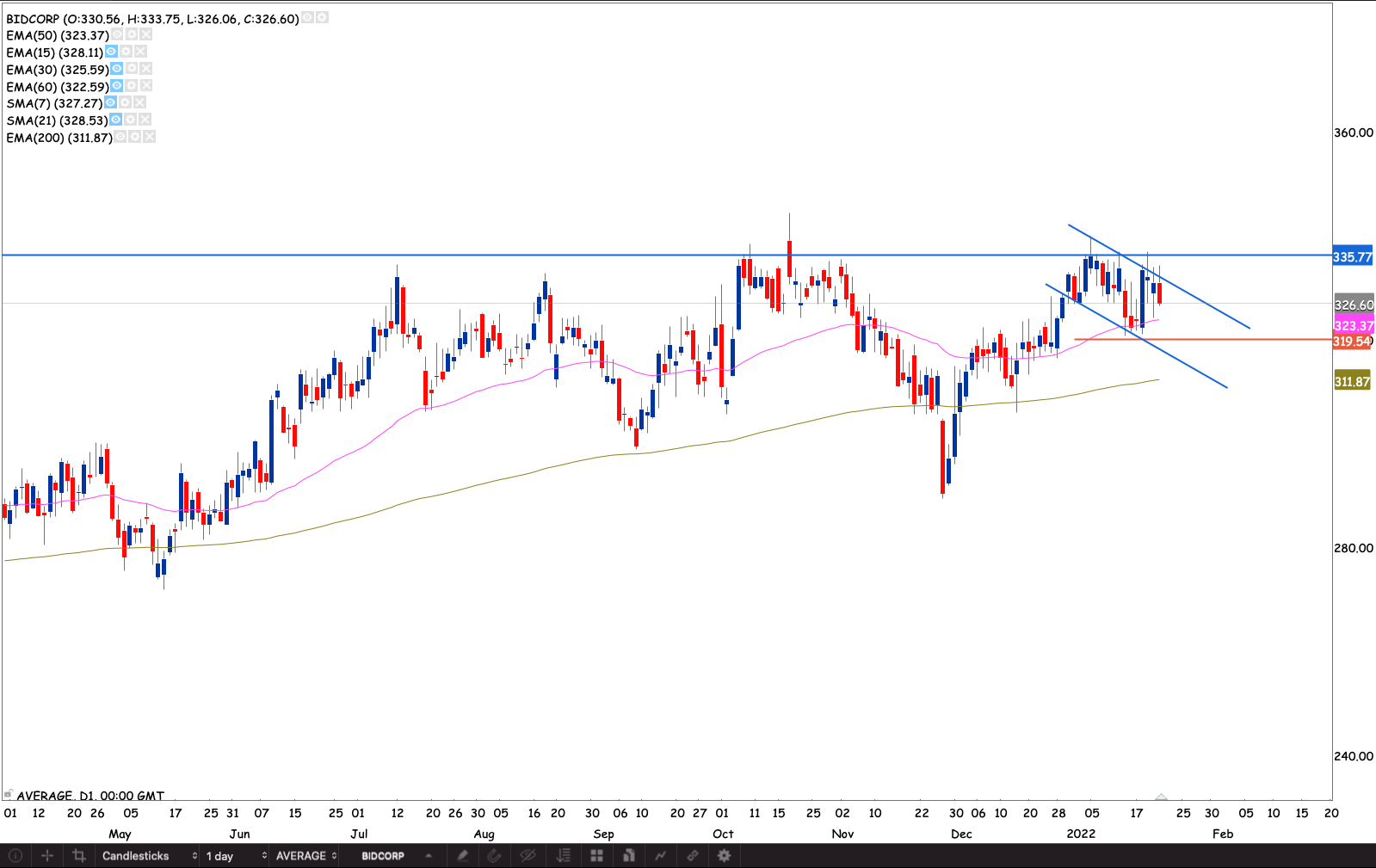 Aspen looks like it’s forming a head and shoulders pattern. We might see it test the 50 day EMA before breaking the R250 neckline. For the R275 target.