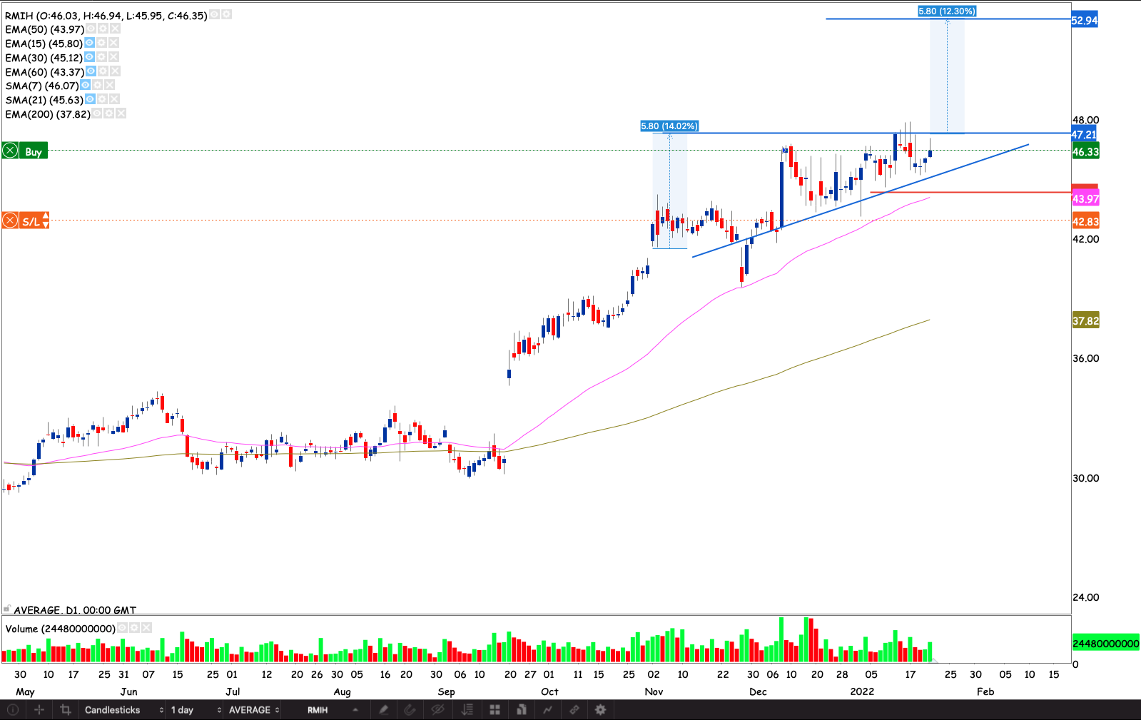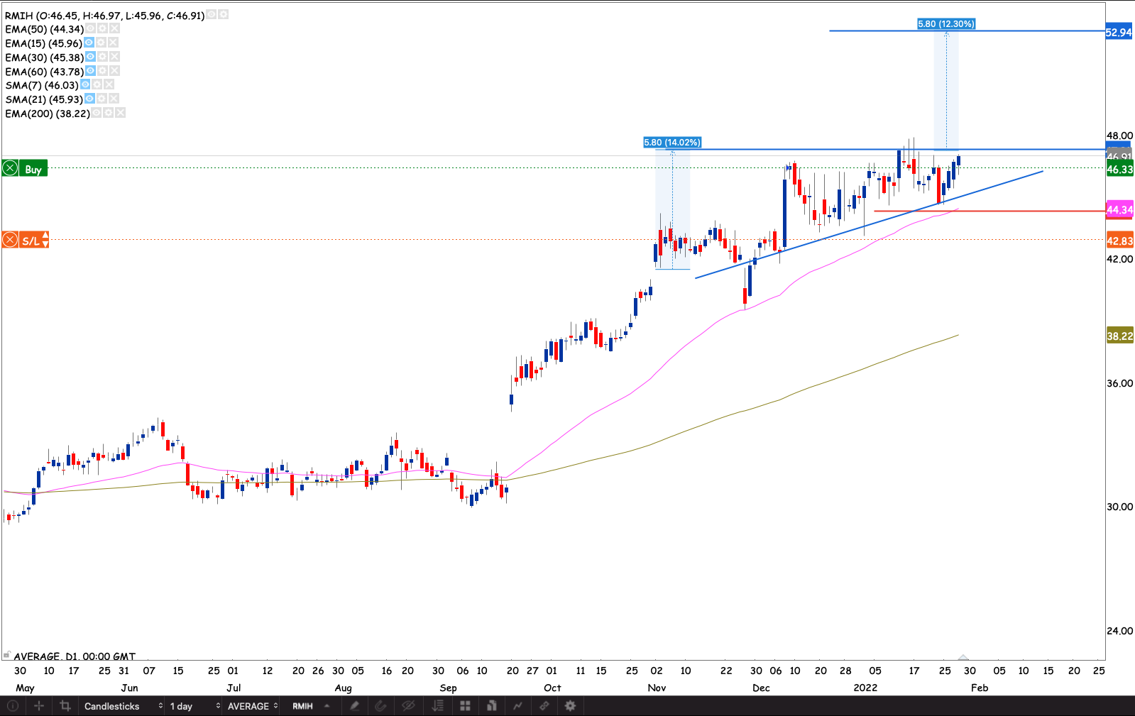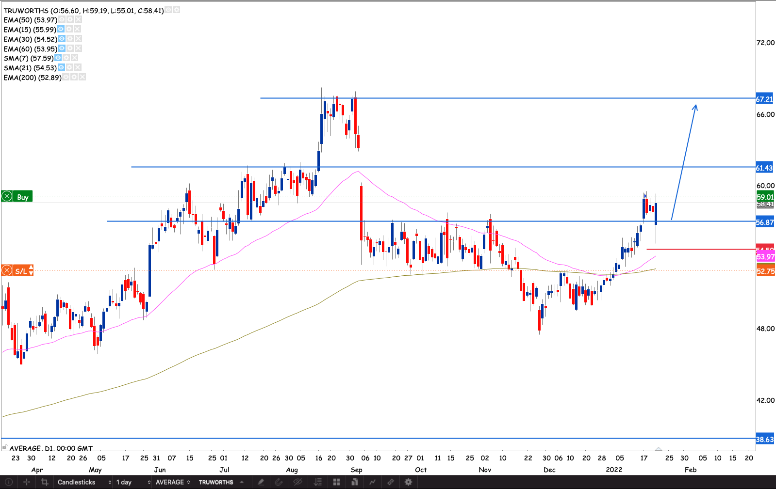 The stock came out with a disappointing trading update. Expecting a decrease in earnings. The stock held up. When the market gets bad news and it goes up. It shows the strength of the market. With a golden cross behind, there’s some decent wind at the back. Perhaps the rising prices in commodities will be enough to save the stock.