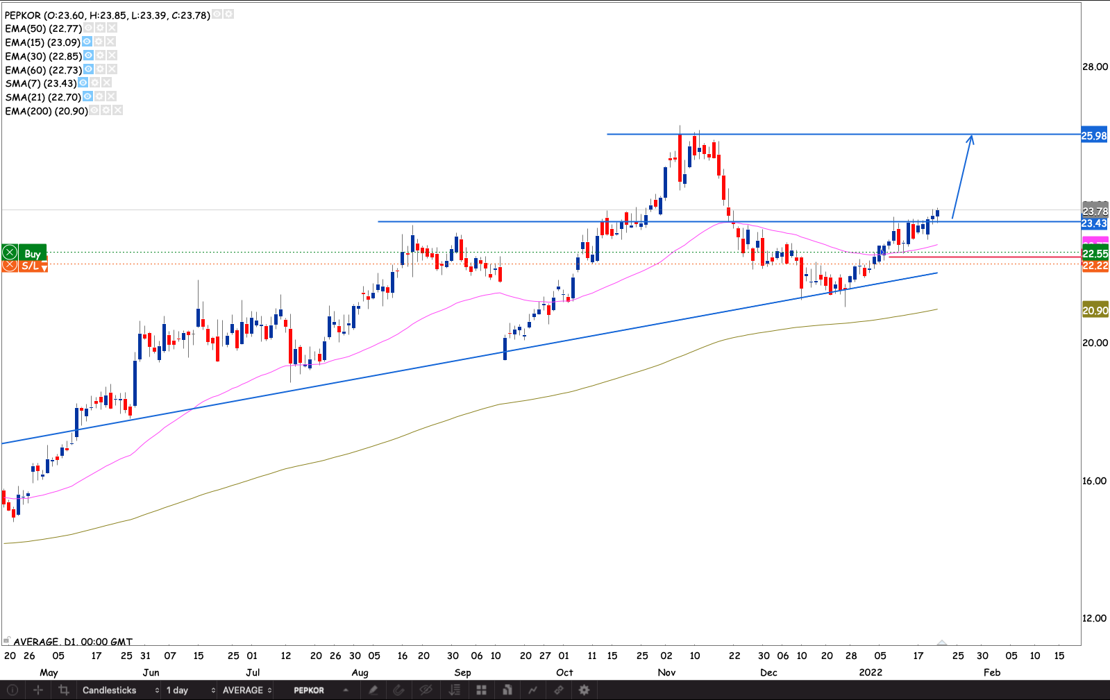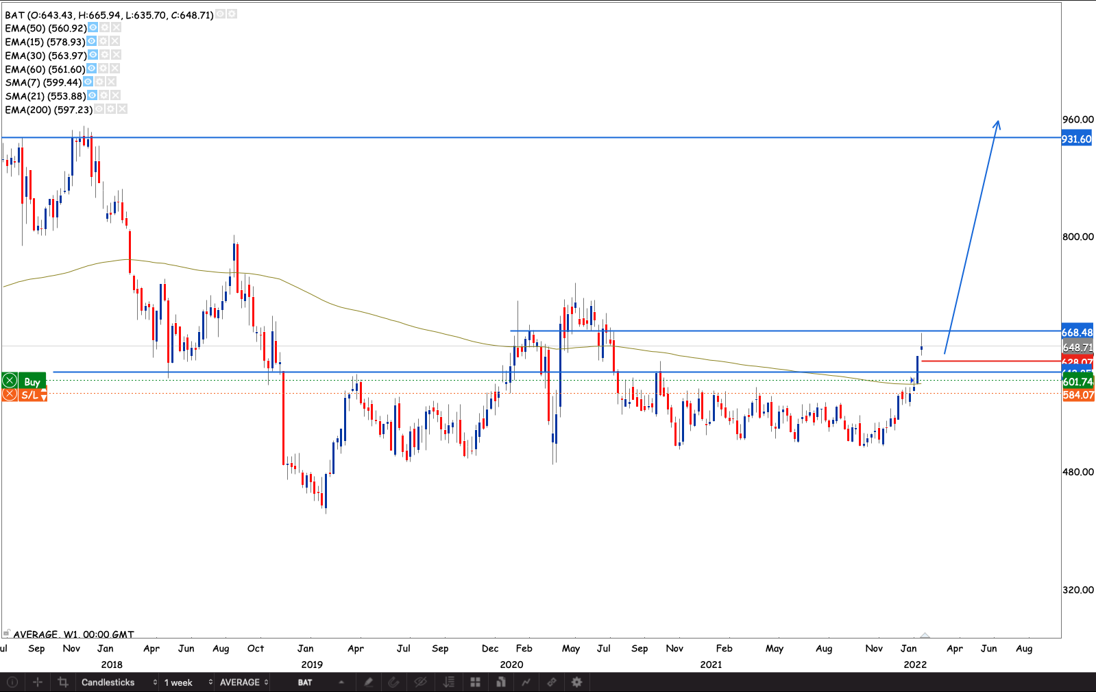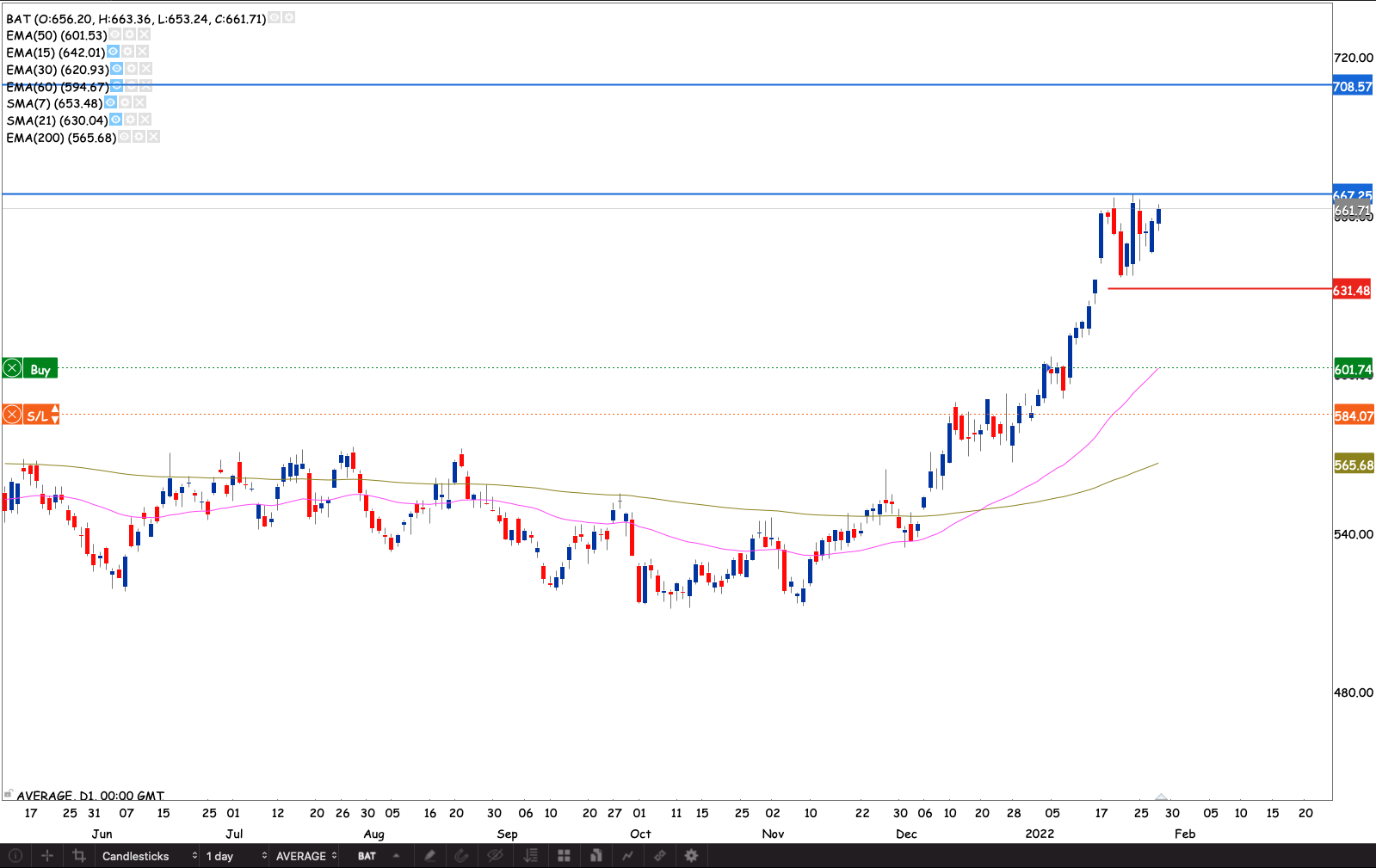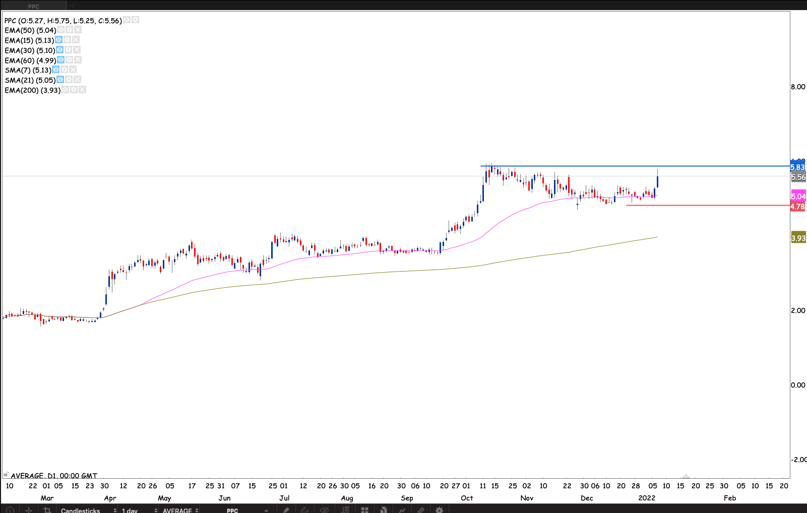 The stock came out with a disappointing trading update. Expecting a decrease in earnings. The stock held up. When the market gets bad news and it goes up. It shows the strength of the market. With a golden cross behind, there’s some decent wind at the back. Perhaps the rising prices in commodities will be enough to save the stock.