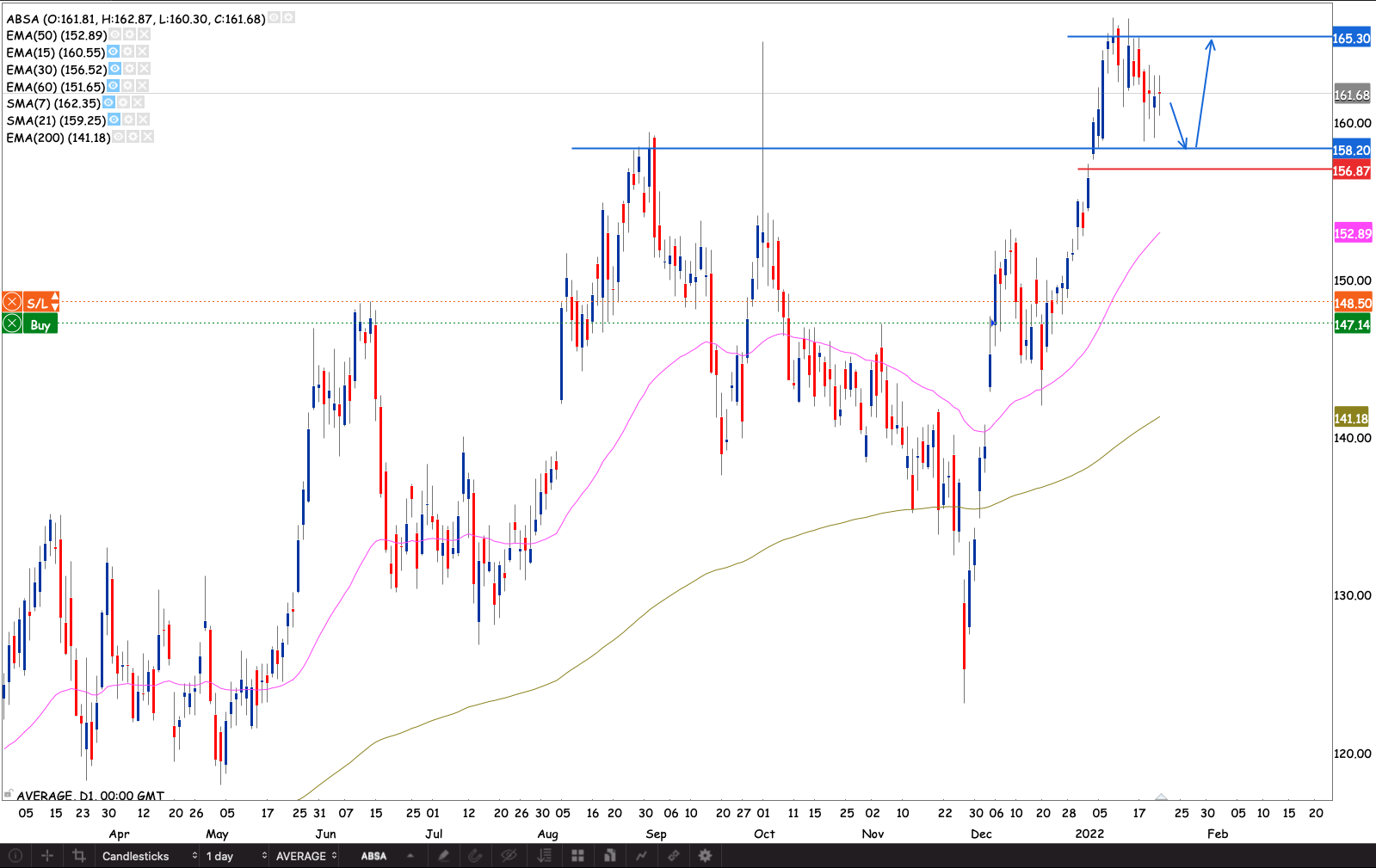 Banks started the year quite strong. Absa breaking into a new box after bouncing off the 50 day EMA. Still keeping my stop loss out of traffic monitoring up and down volatility.