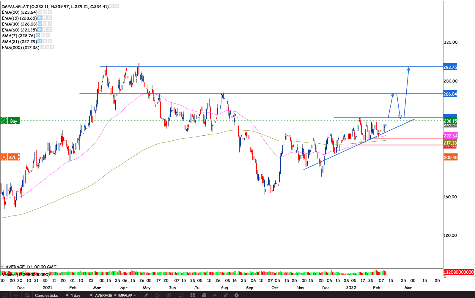 Bulliah platinum prices are positive for Amplats stock. I’m watching the R2006 old support. If the market breaks through, I will raise my stop loss and add to my position. The company has results coming to today